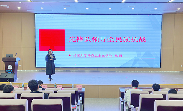 抗日战争是中国人民反抗日本军国主义侵略的正义战争。张莉以《先锋队领导全民族抗战》为题授课,从最危险的时候、抗日民族统一战线、中华民族的抗战三个方面,讲述了经过14年浴血奋战,中国人民最终打败日本侵略者,取得近代以来中国抗击外敌入侵的第一次完全胜利。党的十八大以来,习近平总书记多次回顾中国人民抗日战争暨世界反法西斯战争胜利的历史、深刻总结中国赢得抗日战争胜利的历史意义,并强调指出中国共产党的中流砥柱作用是中国人民抗日战争胜利的关键。在抗日战争中,中国共产党率先高举抗日民族统一战线的旗帜,指引中国抗战的前进方向;确立全面抗战路线,推动形成全民族抗战的历史洪流,提出持久战的战略总方针,推行游击战争等一整套人民战争的战略战术,在全民族抗战中发挥了中流砥柱的作用。