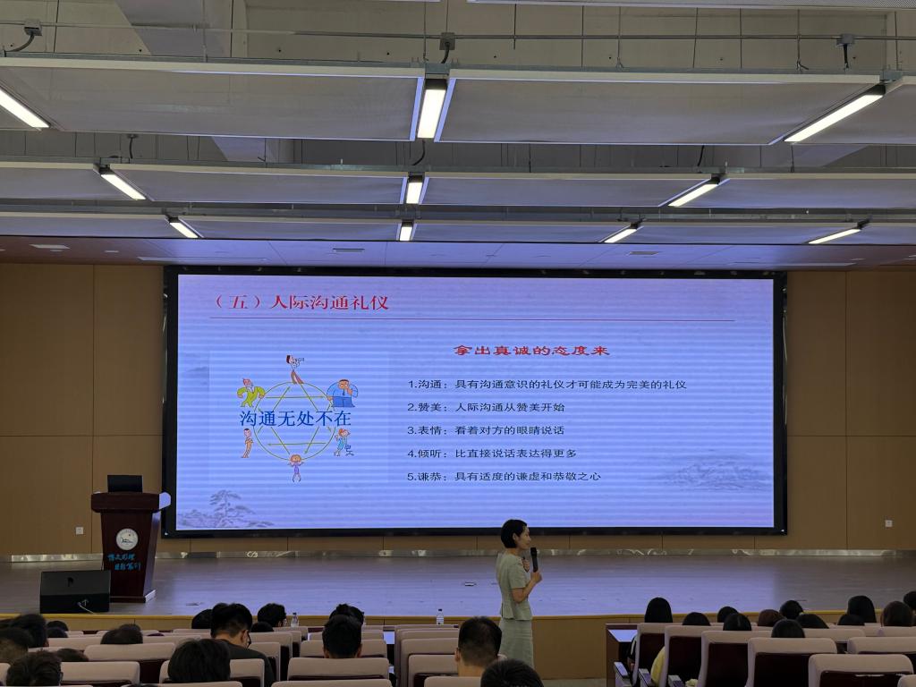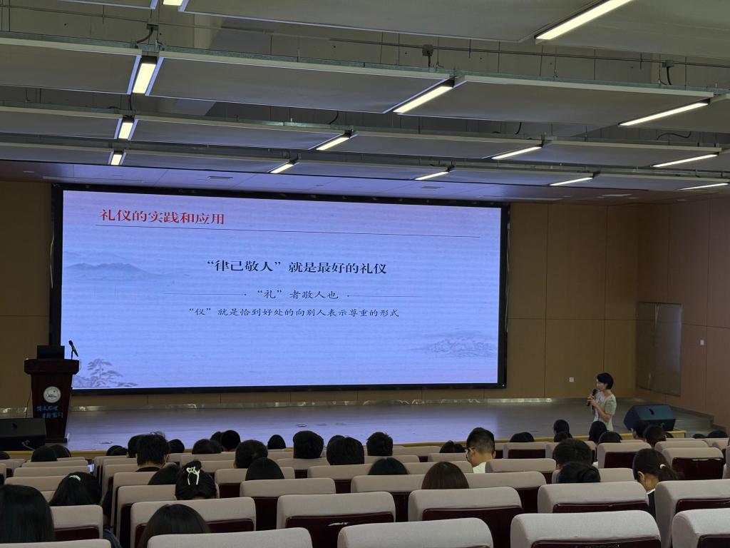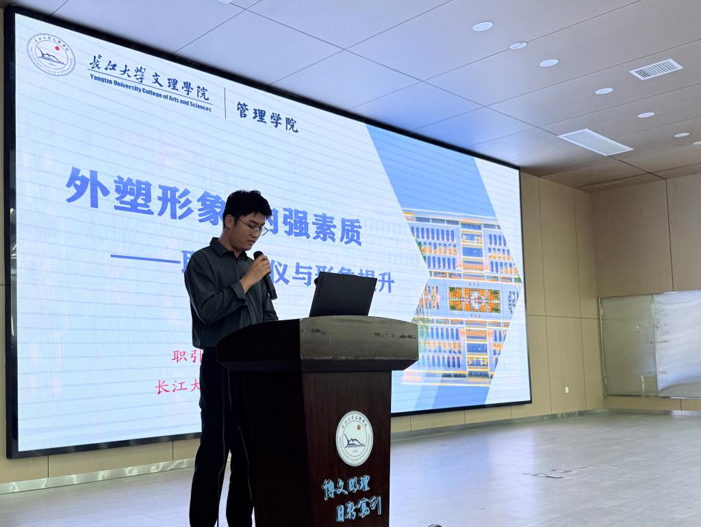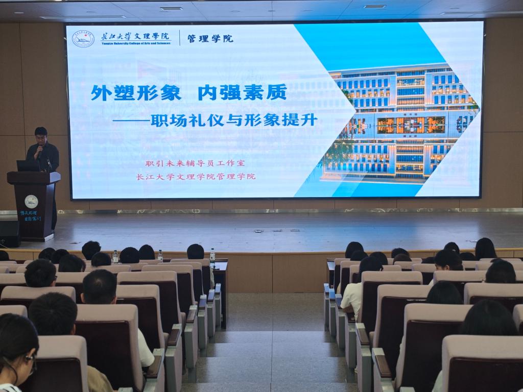 本网讯(通讯员 张佳想)2025年10月9日下午14:30,长江大学文理学院管理学院于B-112学术报告厅举办“外塑形象 内强素质--职场礼仪与形象提升”专题讲座。讲座由侯韦老师主持,特邀荆州市接待中心接待一科科长王霞担任主讲人,围绕着装礼仪、会见礼仪、座次礼仪、办公礼仪、人际沟通礼仪五大核心板块,为现场学子带来了一场干货满满的职场礼仪盛宴。
