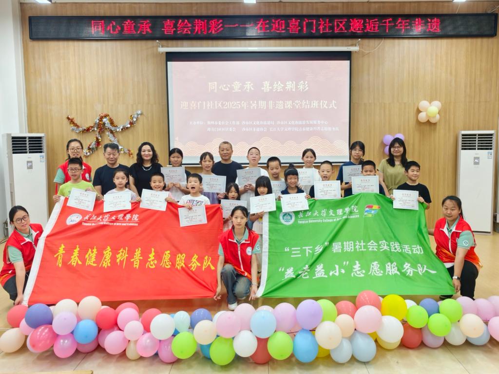 据悉,本次活动由长江大学文理学院青春健康科普志愿服务队联合沙市区非遗协会、迎喜门社区共同举办。从7月11日到8月8日,九期课程如九颗文化种子,在孩子们心中生根。而这场结营仪式,并非终点,而是非遗传承新的起点——当童心与匠心相遇,传统文化的长河必将流淌出更动人的浪花。