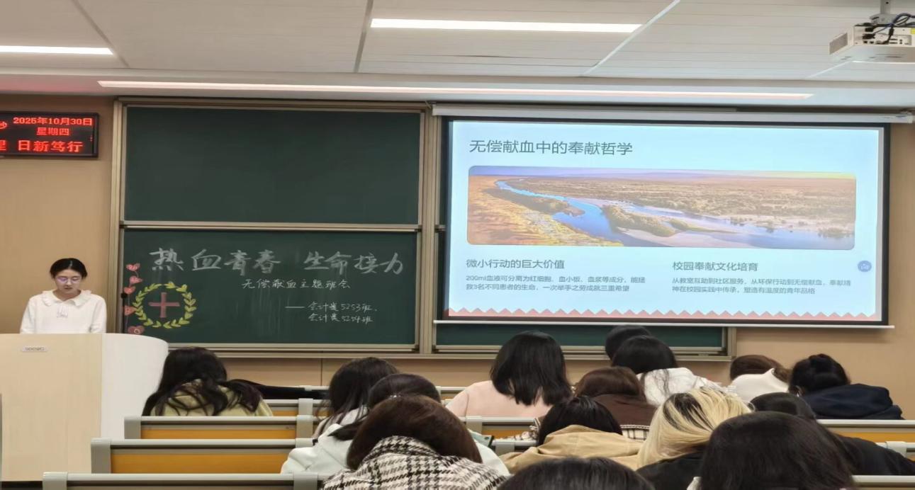 本网讯(通讯员 汪荣一) 为增强大学生对无偿献血的科学认知,培养社会责任感,长江大学文理学院管理学院于11月2日晚开展“热血传递爱,生命共续航”主题班会,此次班会新校区与城中校区同步进行,通过生动的PPT科普、互动讨论,让同学们深入了解无偿献血的意义、知识与本地血液现状,在校园中掀起一股“热血公益”的青春热潮。