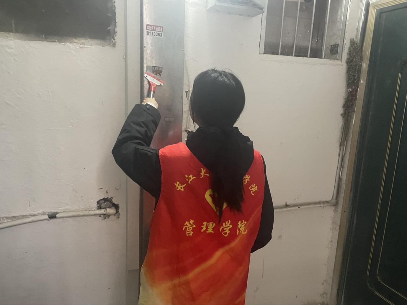 汗水浸湿了衣衫,却挡不住大家服务的热情。志愿者们手上沾满了灰尘,换来了环境的洁净。充分展现了当代大学生的责任与担当。经过数小时的辛勤付出,单元楼内的小广告被彻底清除,楼梯干净,环境面貌焕然一新。