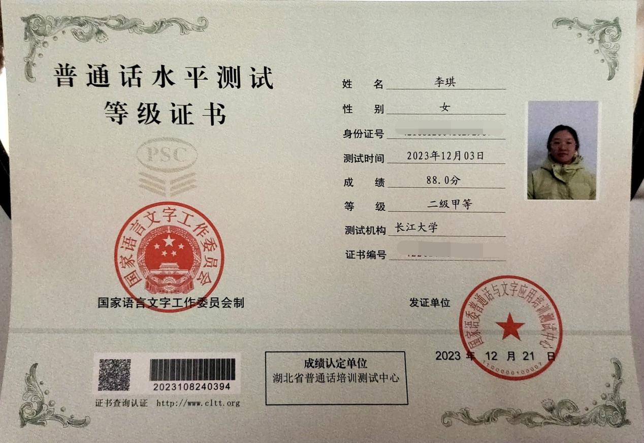 李琪连续两年获学院一等奖学金,多门课程成绩位列专业前列,43门课程85+,30门课程90+,线性代数B100分,成本会计99分,财务管理99分,获三好学生荣誉称号。她已考过计算机二级、初会、普通话二甲、英语四级。