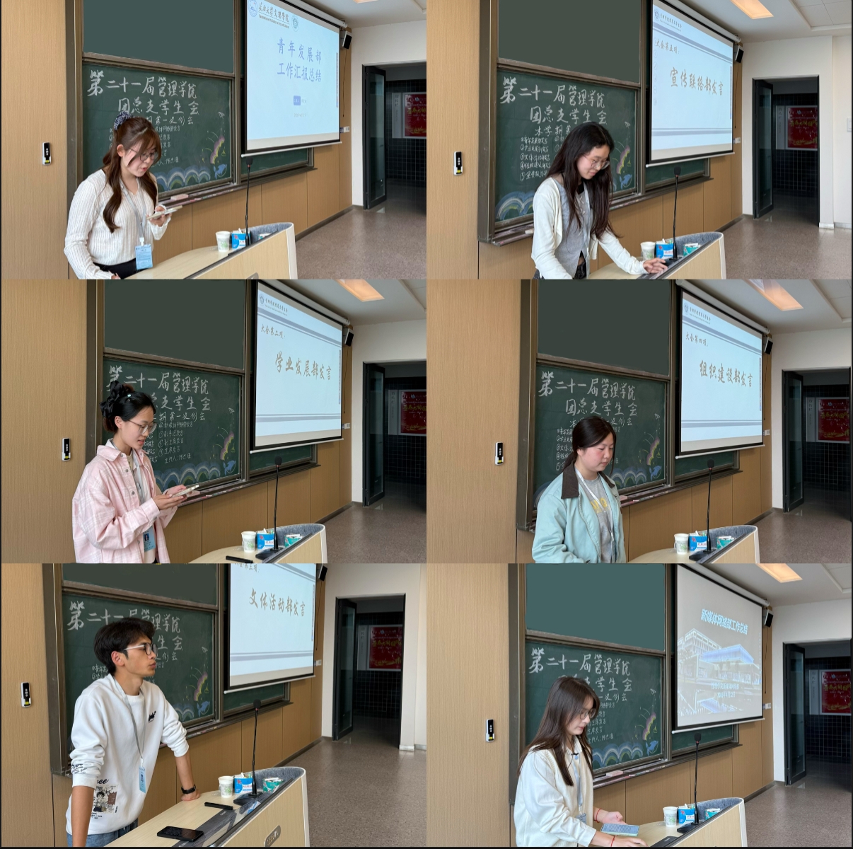 会议伊始,六个部门部长依次上台汇报工作。各部门对上一阶段工作推进情况开展了系统复盘。总体来看,各项工作进展平稳有序、推进有力,既定任务均已如期落地落实。同时,汇报也客观剖析了当前存在的短板,针对部门工作效率有待提升、成员日常沟通衔接不够及时、统筹规划不够合理等问题,明确了后续的整改方向与优化举措。各部门表示,将进一步强化自身建设,推动部门协作,助力学生会整体工作提质增效。