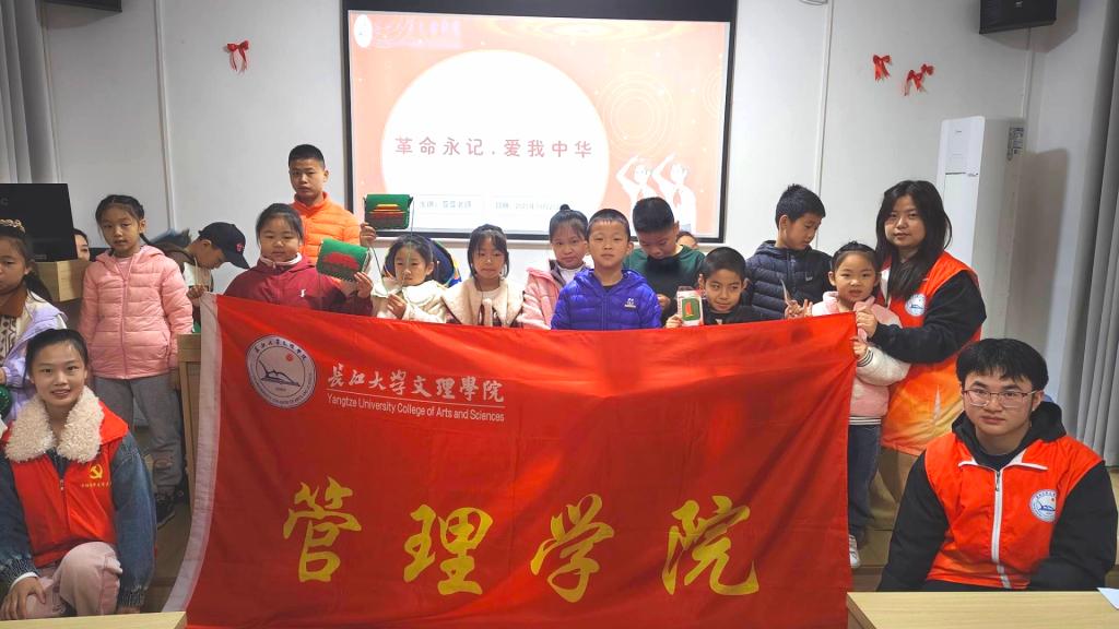 本网讯(通讯员黄江琴)为深入弘扬革命文化,将红色种子播撒进青少年心田,2025年10月26日,长江大学文理学院管理学院学生党支部“周末学堂”志愿服务队再度出发,前往朝阳路社区开展主题教育活动。本次活动聚焦革命精神传承,通过一系列精心设计的环节,引导社区儿童在寓教于乐中接受爱国主义教育的洗礼。
