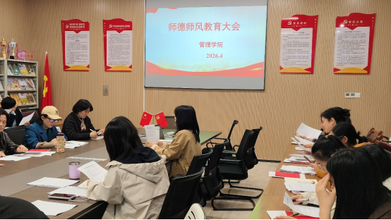 本网讯(通讯员 周丹)4月23日下午,我院教工党支部在管理学院会议室532开展了2026年度4月份政治学习和“支部主题党日”活动,本次会议由我院党总支书记胡沿林主持,管理学院全体教职工参加。