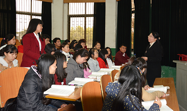 青年教师周文芳在讲课