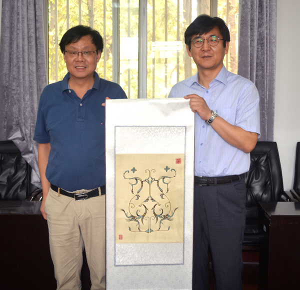 会上,双方就学生“专升本”、“1+3”本科、“3+1”本科及研究生教育等模式的的具体细则进行了沟通。同时具洸範代表韩国加图立关东大学热忱地邀请梅平十一月份赴韩访问。梅平向具洸範赠送了具有传统楚文化特色的工艺品楚绣。