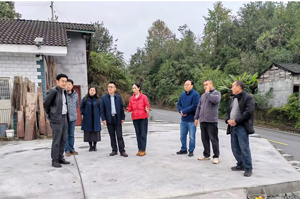 在基础设施与民生项目现场,颜建洲一行实地查看了学校今年帮扶的“亮灯工程”三期、“同心守望” 智慧养老平台、入户路及产业路硬化、应急水源供应点等项目的建设、管理使用情况。自2023年以来,学校帮扶建设的三期“亮灯工程”共累计安装路灯65 盏,不仅照亮村民夜间出行路,更让文化广场成为村民开展广场舞、球类运动的夜间活动阵地。今年新建的“同心守望”智慧养老平台,目前共设置25个监测点,整合健康监测、紧急呼叫、助餐助医功能于一体,实现对独居老人、病疾人员等特殊群体的全时段、无死角关爱。
