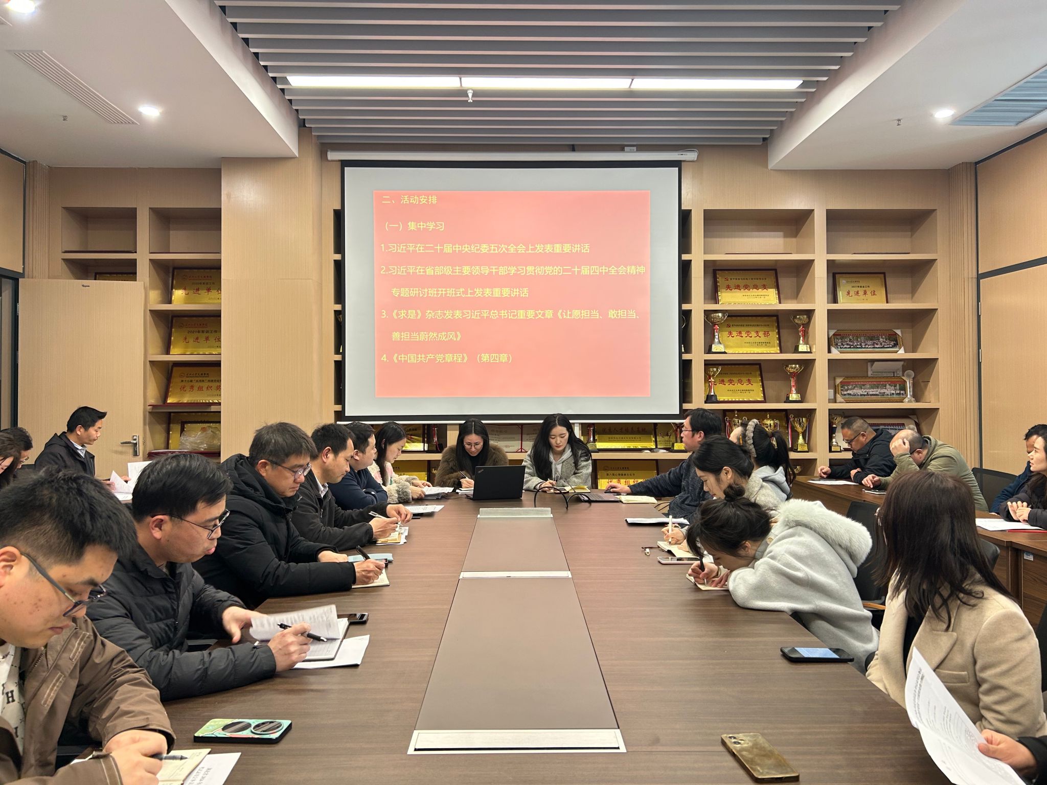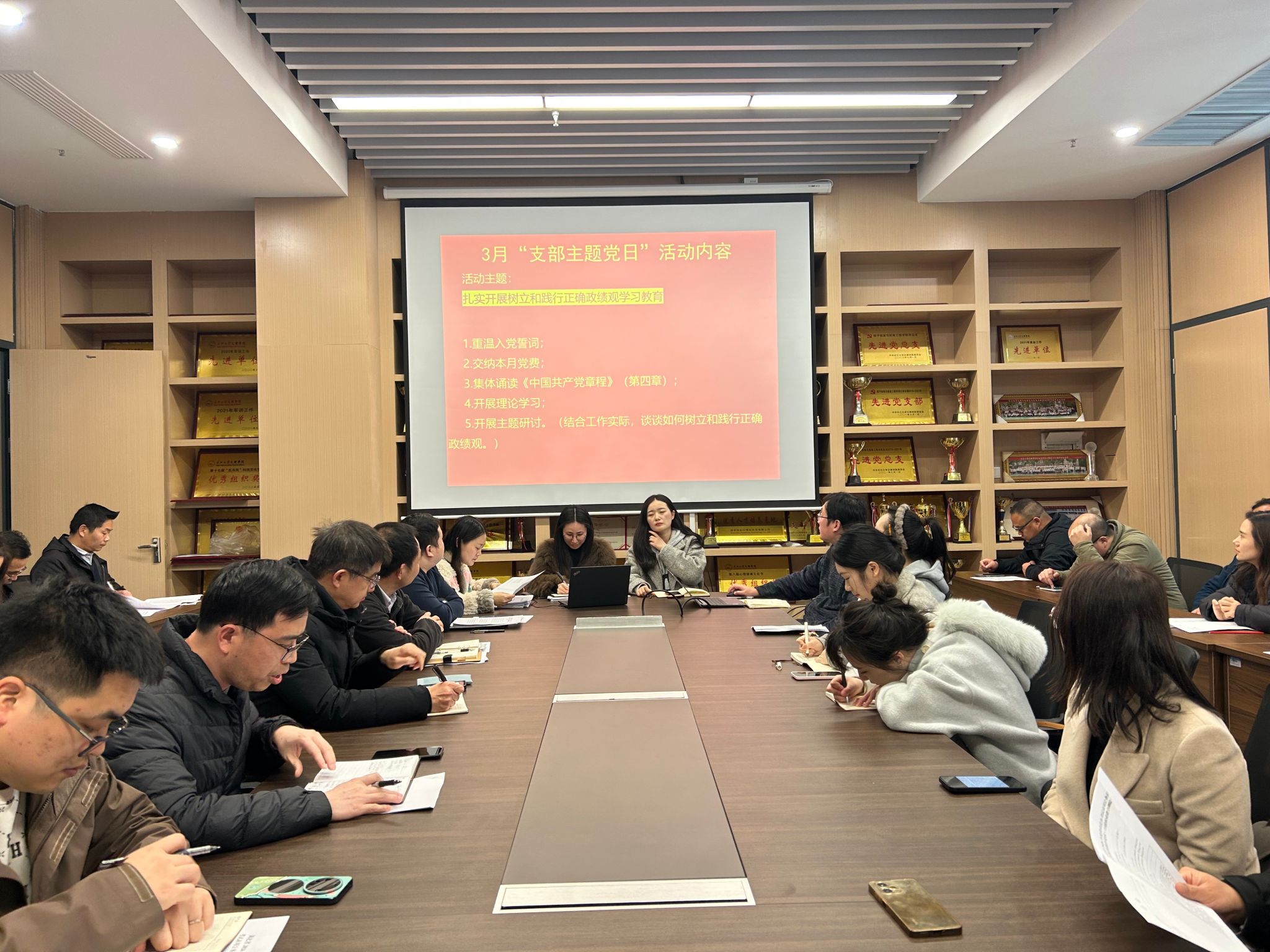 在支部主题党日活动中,全体党员重温入党誓词、交纳党费,集体学习《中国共产党章程》(第四章);学习中办印发《通知》,在全党开展树立和践行正确政绩观学习教育;学习王忠林主持召开省委常委会(扩大)会议,深入学习贯彻习近平总书记重要论述、扎实开展树立和践行正确政绩观学习教育;学习2026年全省教育工作会议精神;学习新时代高校思政课建设工作推进会精神;学习长江大学文理学院2025年工作总结表彰暨2026年工作部署会精神等内容。