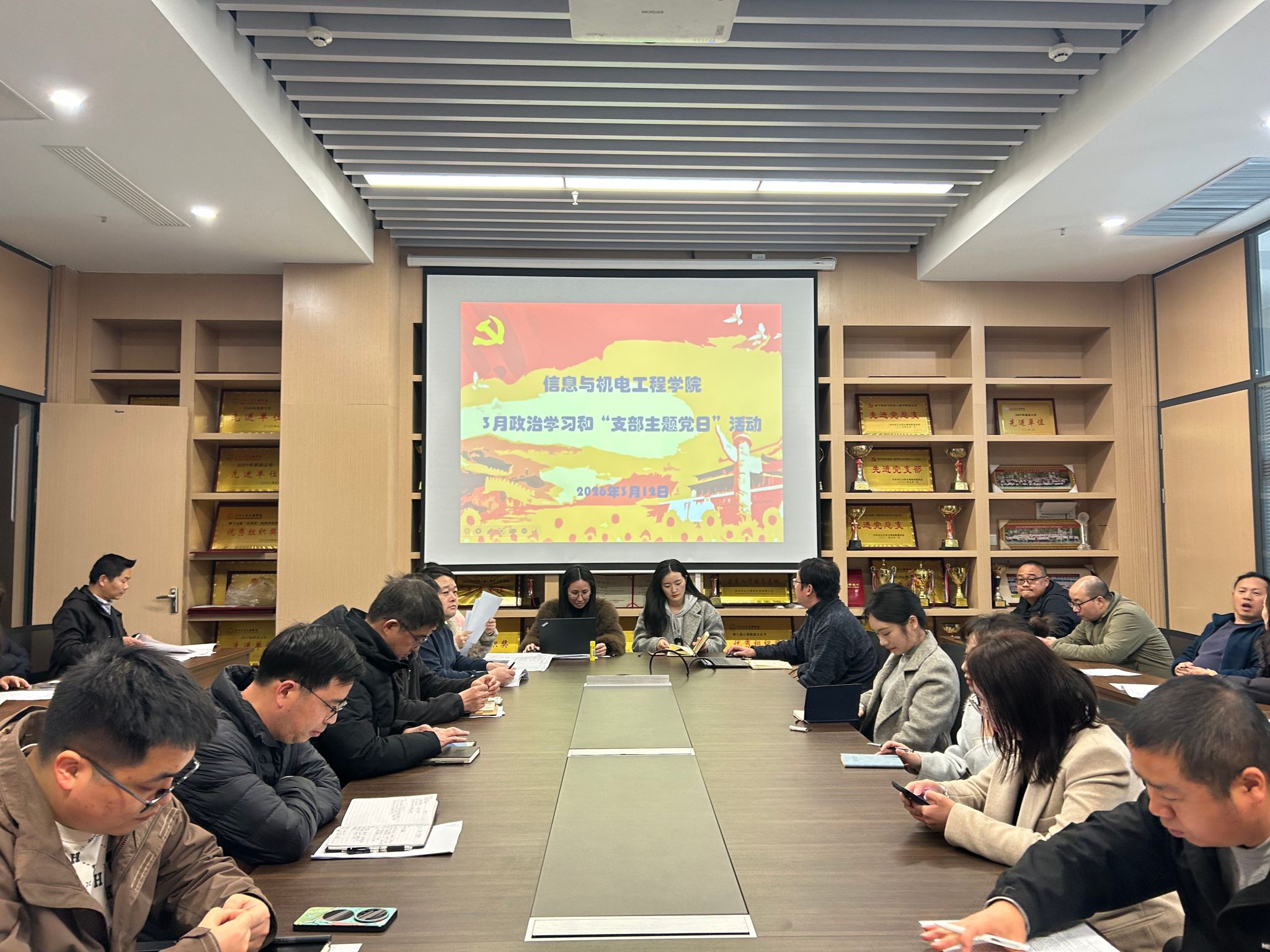 本网讯(通讯员王妍柳)3月12日中午,学院教工党支部在信息学院会议室开展3月份政治学习和“支部主题党日”活动。会议由院教工党支部书记呙明辉主持,支部全体教职工参加。