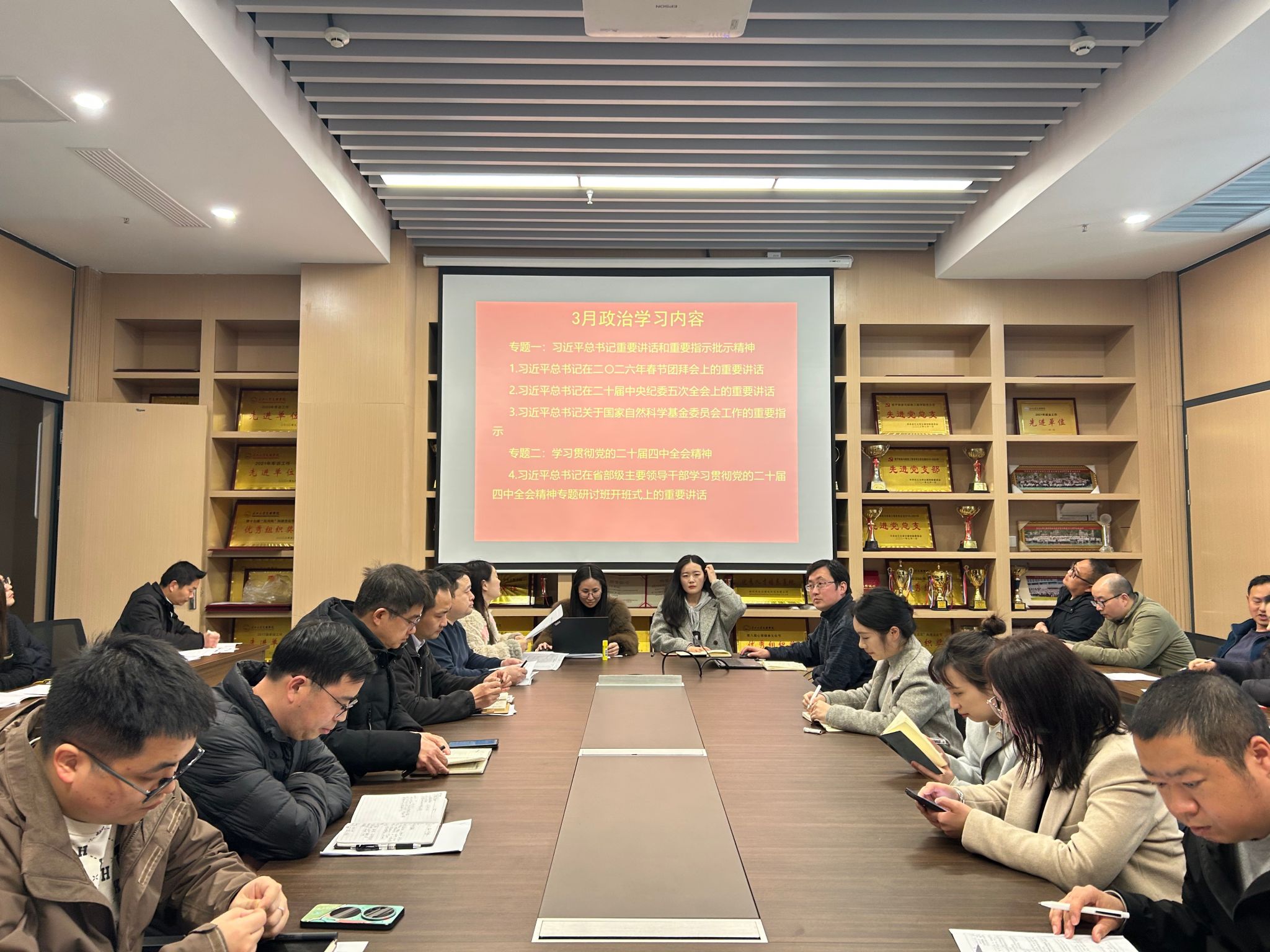 政治学习阶段,呙明辉带领大家集体学习习近平总书记在二〇二六年春节团拜会上的重要讲话;学习习近平总书记在二十届中央纪委五次全会上的重要讲话;学习习近平总书记关于国家自然科学基金委员会工作的重要指示;学习习近平总书记在省部级主要领导干部学习贯彻党的二十届四中全会精神专题研讨班开班式上的重要讲话;学习《求是》杂志发表习近平总书记重要文章——《让愿担当、敢担当、善担当蔚然成风》;学习习近平总书记在全国两会期间的重要讲话精神,学习2026年政府工作报告(极简版)等重要内容。