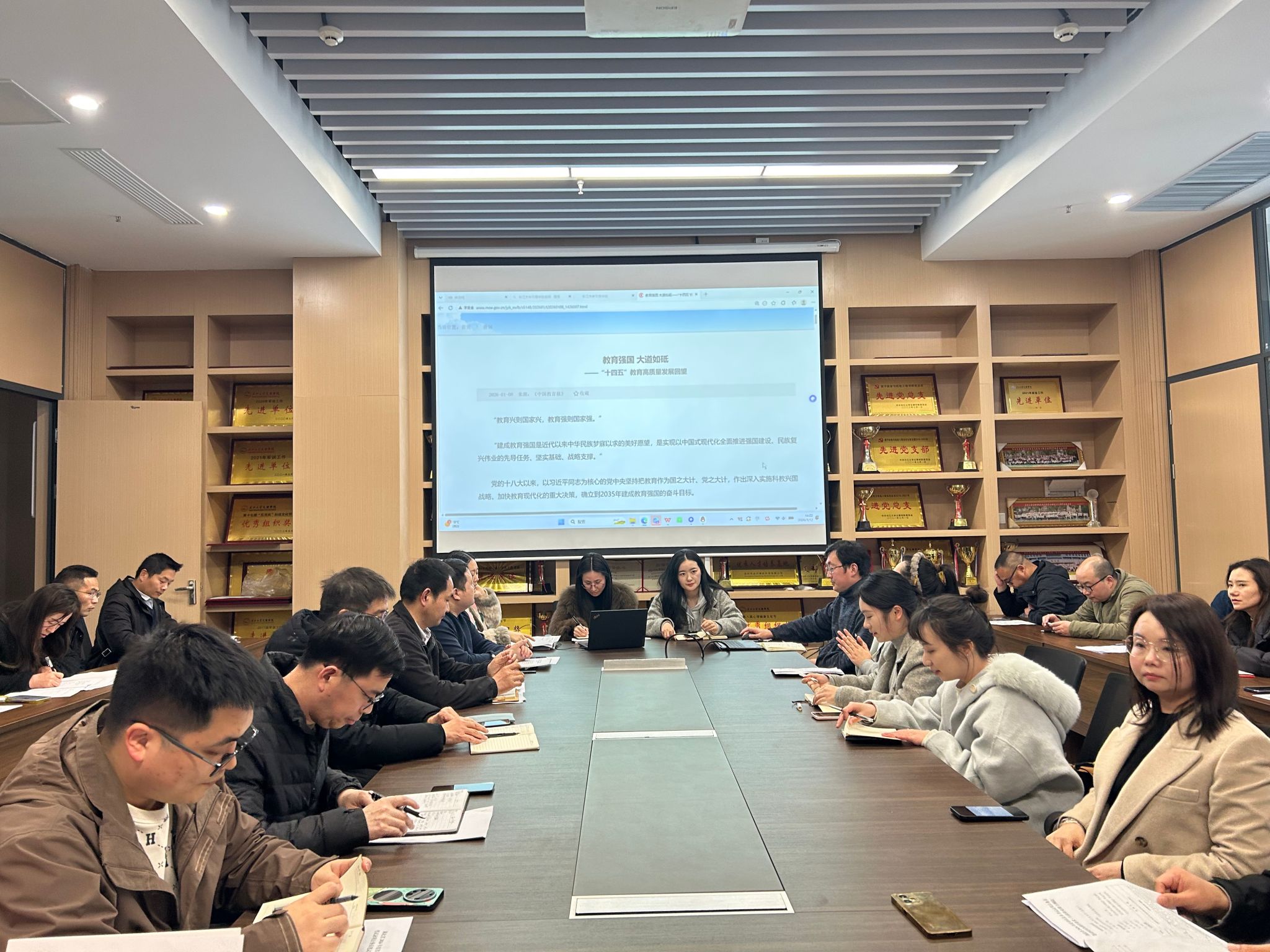 接下来,会议组织开展了师德师风专项学习,组织大家学习《教育强国大道如砥——“十四五”教育高质量发展回望》,号召大家凝聚合力、久久为功,以教育家精神锤炼自己,奋力投身教育强国建设。