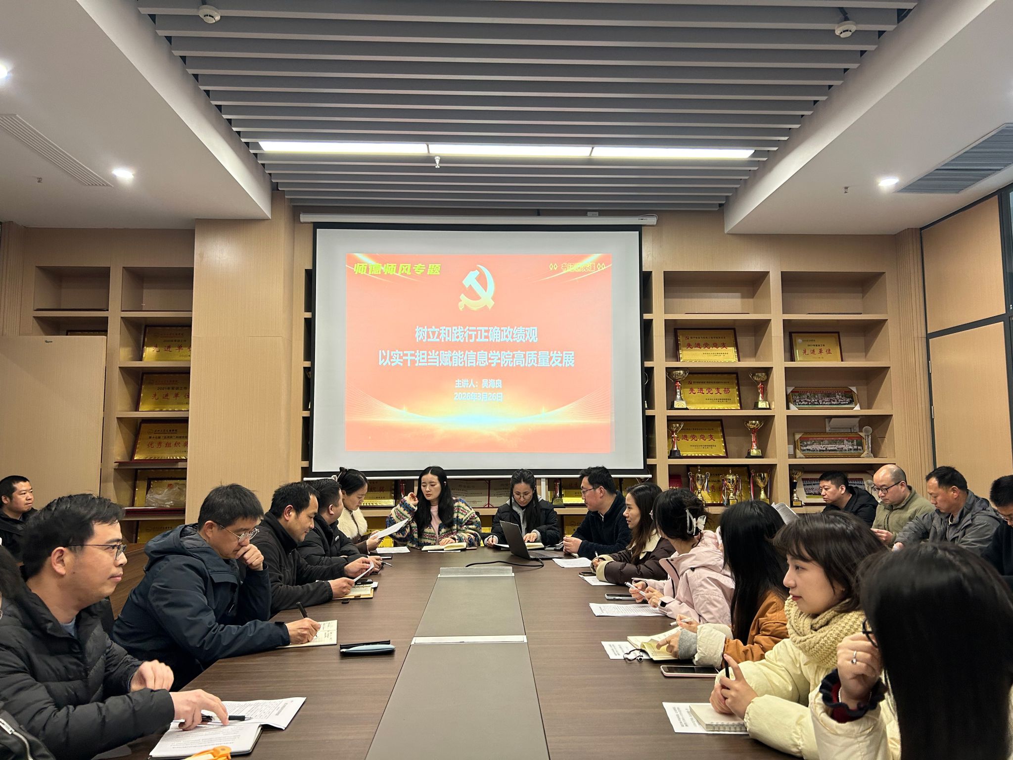 结合师德师风教育,党总支书记吴海良以《树立和践行正确政绩观 以实干担当赋能信息学院高质量发展》为题,讲授“树立和践行正确政绩观学习教育”专题党课。他从“什么是正确的政绩观”“为什么要树立正确政绩观”“如何以正确政绩观引领学院高质量发展”三个方面展开阐述,强调全体党员教师要始终坚持以师生为中心的发展思想,把立德树人成效作为检验工作的根本标准,力戒形式主义、官僚主义,立足岗位、真抓实干,在人才培养、学科建设、社会服务等中心工作中展现新作为,切实将学习教育成果转化为推动学院高质量发展的强大动力。