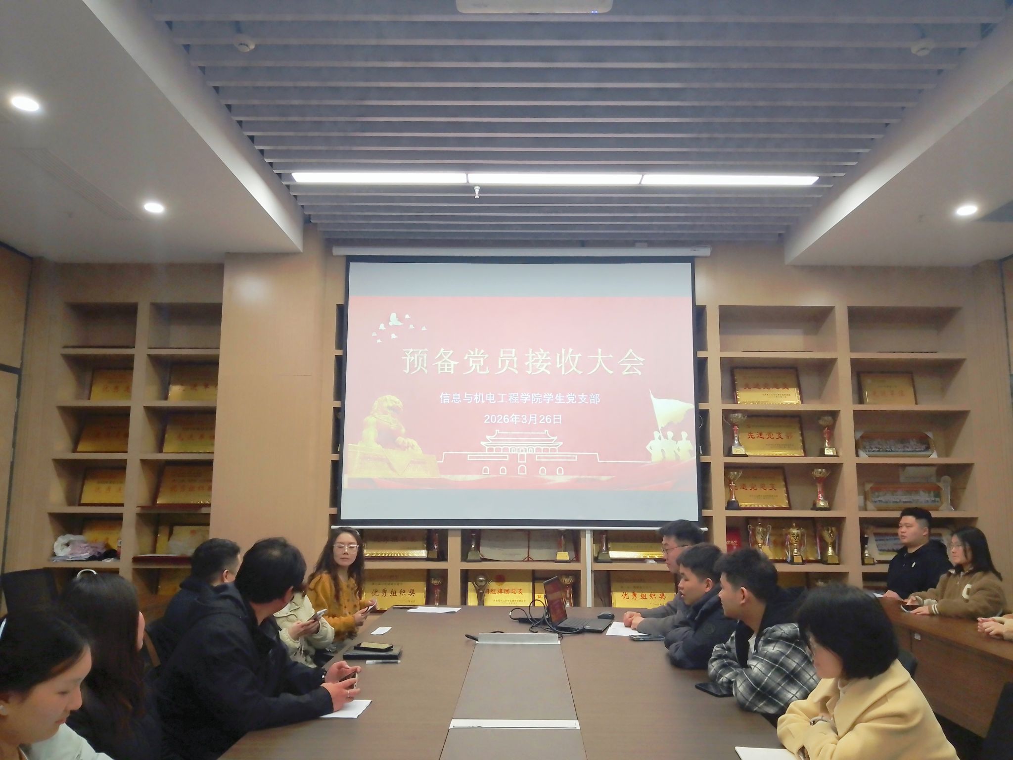 本网讯 (通讯员 赵秋丽) 3月26日晚,学院学生党支部在信息学院会议室召开预备党员接收大会,会议讨论表决田聪同志接收为预备党员事宜,大会严格按照《中国共产党发展党员工作细则》规定程序进行,支部全体党员参会,支部书记王大专同志主持会议并作总结讲话。