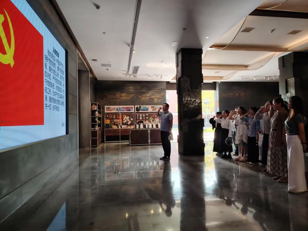 活动在沙市记忆馆拉开帷幕。学院副院长、教工党支部书记呙明辉主持活动,并带领全体党员教师重温入党誓词。