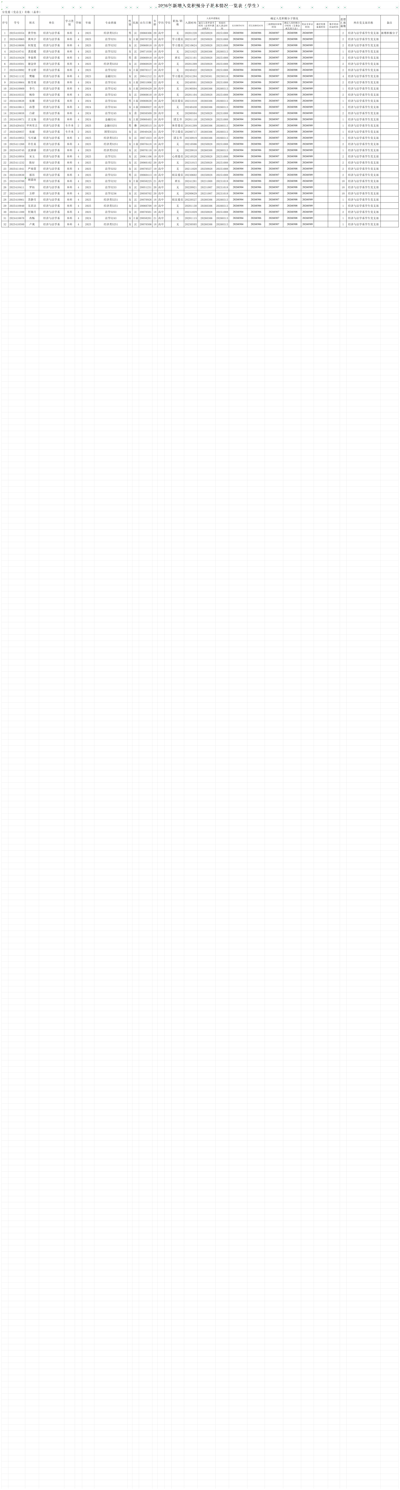 根据党员推荐和团组织推优情况,经支部委员会会议讨论决定并报经济与法学系党总支备案,确定黄学怡等32名同学为入党积极分子,现予以公示(见附件)。