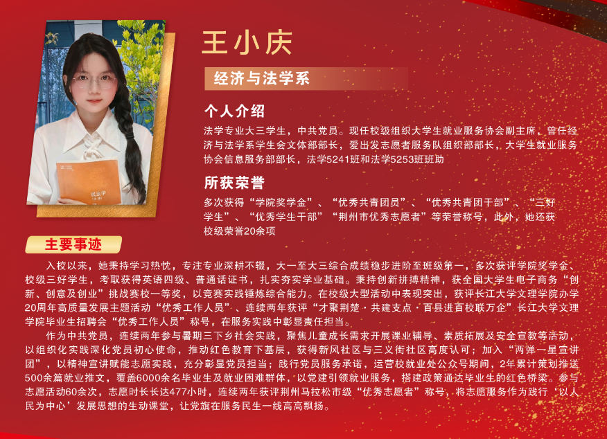 【学子风采】2024-2025学年国家奖学金获得者-法学5232王小庆
