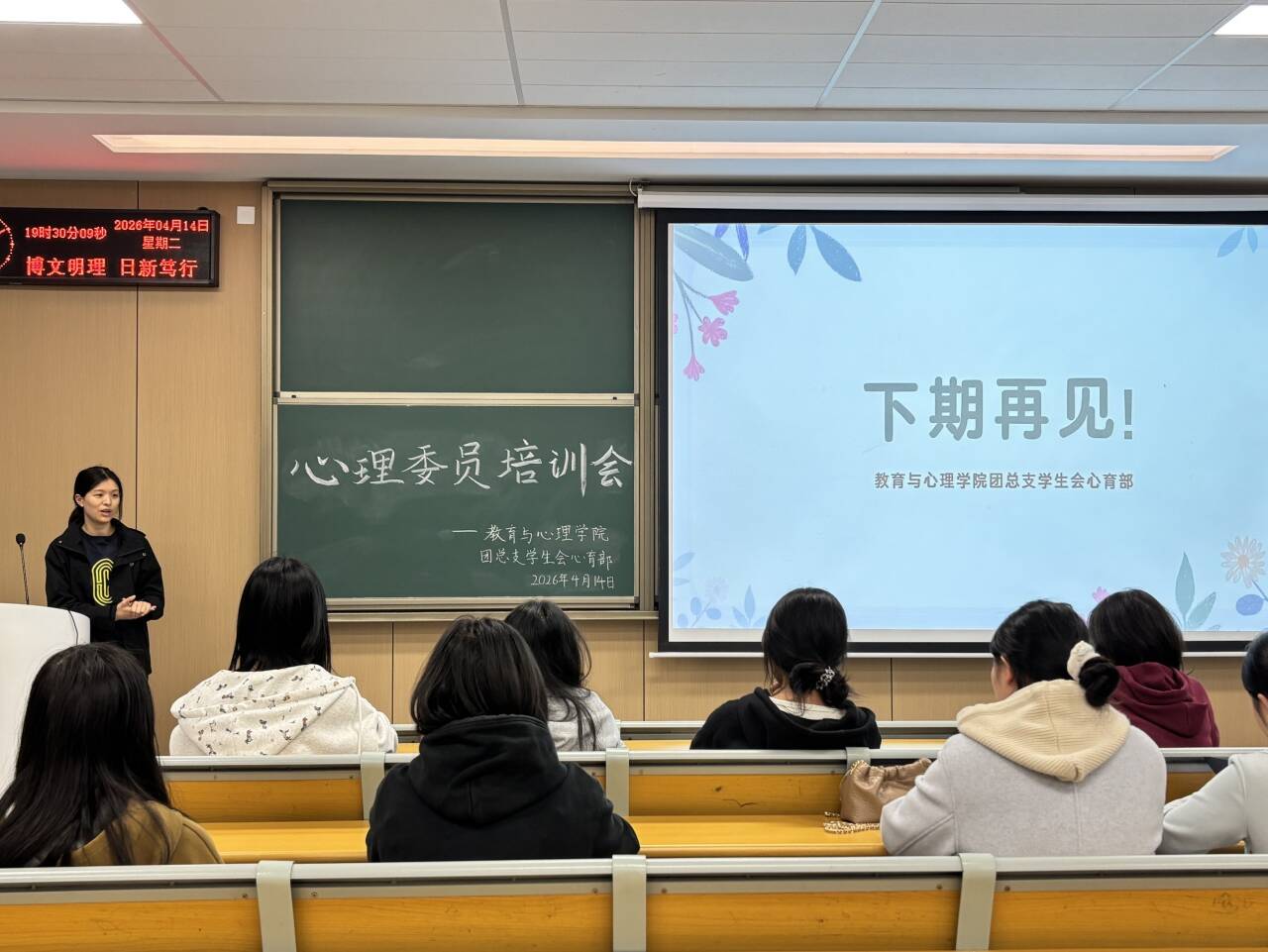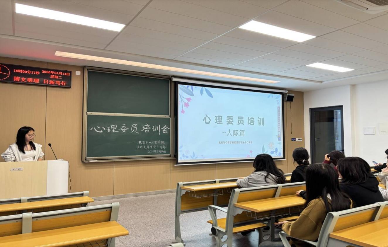 本网讯(通讯员 俞佳蓓)为健全学院心理健康教育工作体系,提升心理委员朋辈帮扶专业能力与综合素养,4月14日19:00,我院在教学楼A-410圆满举行第一期以人际关系为主题的心理委员专项培训。培训由教育与心理学院团总支学生会心育部部长王婧娴主持,辅导员李晓怡、心育部全体成员及各班心理委员参会。