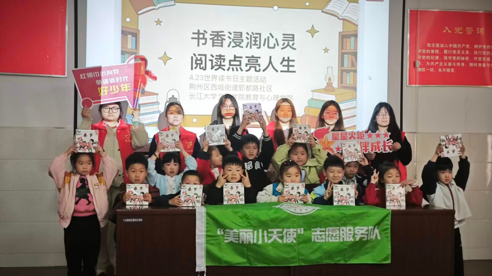 本网讯(通讯员 王诗韵)为弘扬志愿服务精神,传播环保理念与非遗文化,2026年4月23日,我院“美丽小天使”志愿服务队走进郢都路社区,开展“爱心送书与逢旧更新‘趣’无限——小小乐修匠成长纪”双主题志愿服务活动,将书香传递、非遗体验与环保实践深度融合,助力孩子们在快乐实践中全面成长。