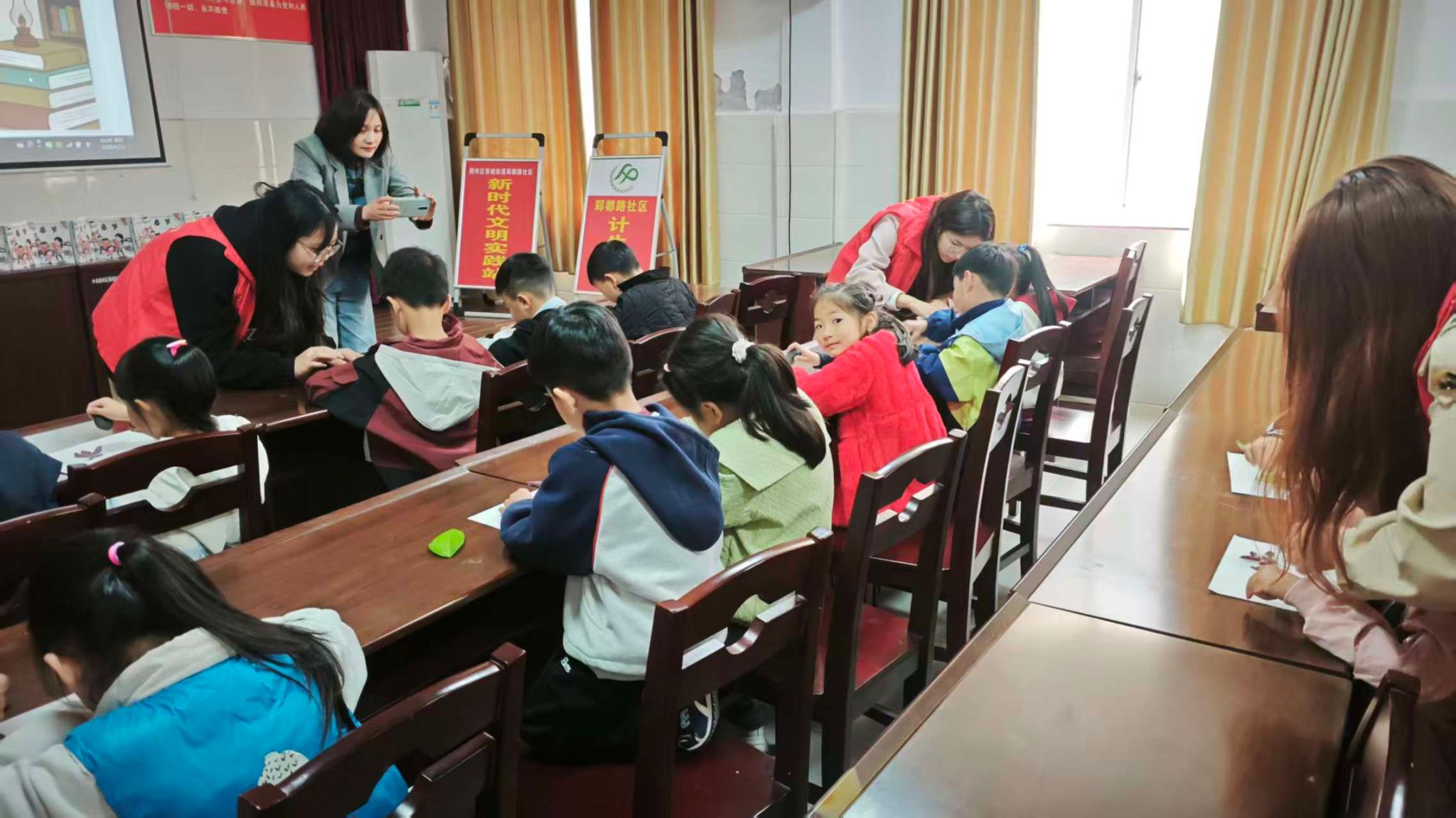 以书润心,筑梦成长。活动伊始,志愿者们协同社区为孩子们带来丰富的儿童读物,与孩子们共读分享、交流心得,用书香点亮童年,让阅读的种子在孩子们心中生根发芽。