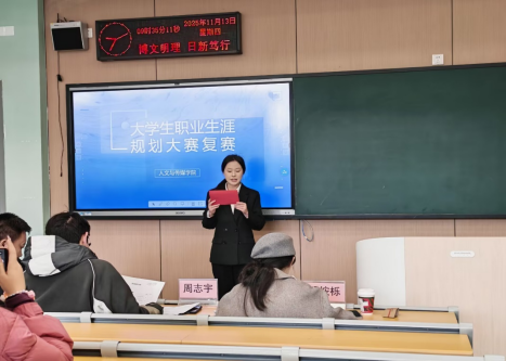 本网讯(通讯员 郝梓涵)为帮助学生明确职业发展方向,增强就业竞争力与职业素养,11月13日,人文与传媒学院在C-116教室成功举办第三届职业规划大赛院级复赛。本次比赛特邀解桉栎、周志宇、彭军军三位教师担任评委。