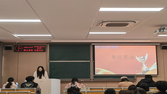 本网讯(通讯员 郝梓涵)为全面总结学期团学工作成效,表彰在学生工作、学业成长、服务奉献中表现突出的优秀学生骨干,进一步激发全院学生奋进动力,凝聚集体发展合力,12月11日下午,人文与传媒学院学期总结表彰大会在C-118M教室顺利召开。学院党总支副书记雷昕,辅导员梁玥、李艺欣、邵宇、彭军军出席会议,团总支学生会主席团及受表彰学生代表共35人参加,会议由马思蕊主持。