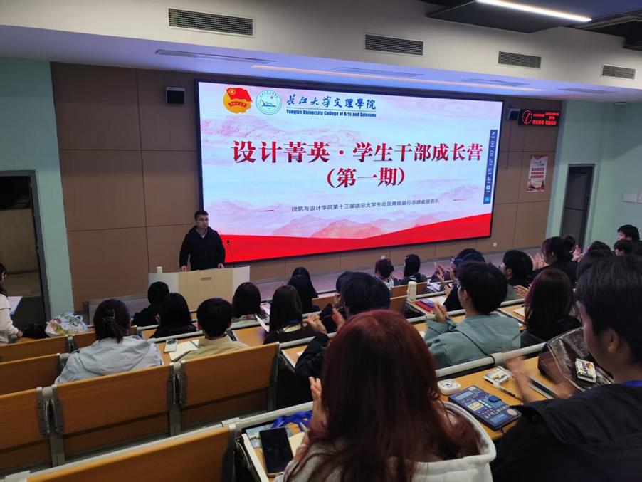 (本讯网 严定慧)11月13日晚,长江大学文理学院建筑与设计学院“设计菁英·学生干部成长营(第一期)”培训交流活动在教学楼B214正式展开。学院党总支副书记成观雄来到培训开营现场,做首次讲座,团总支学生会及青绘益行志愿者服务队全体成员参与培训。