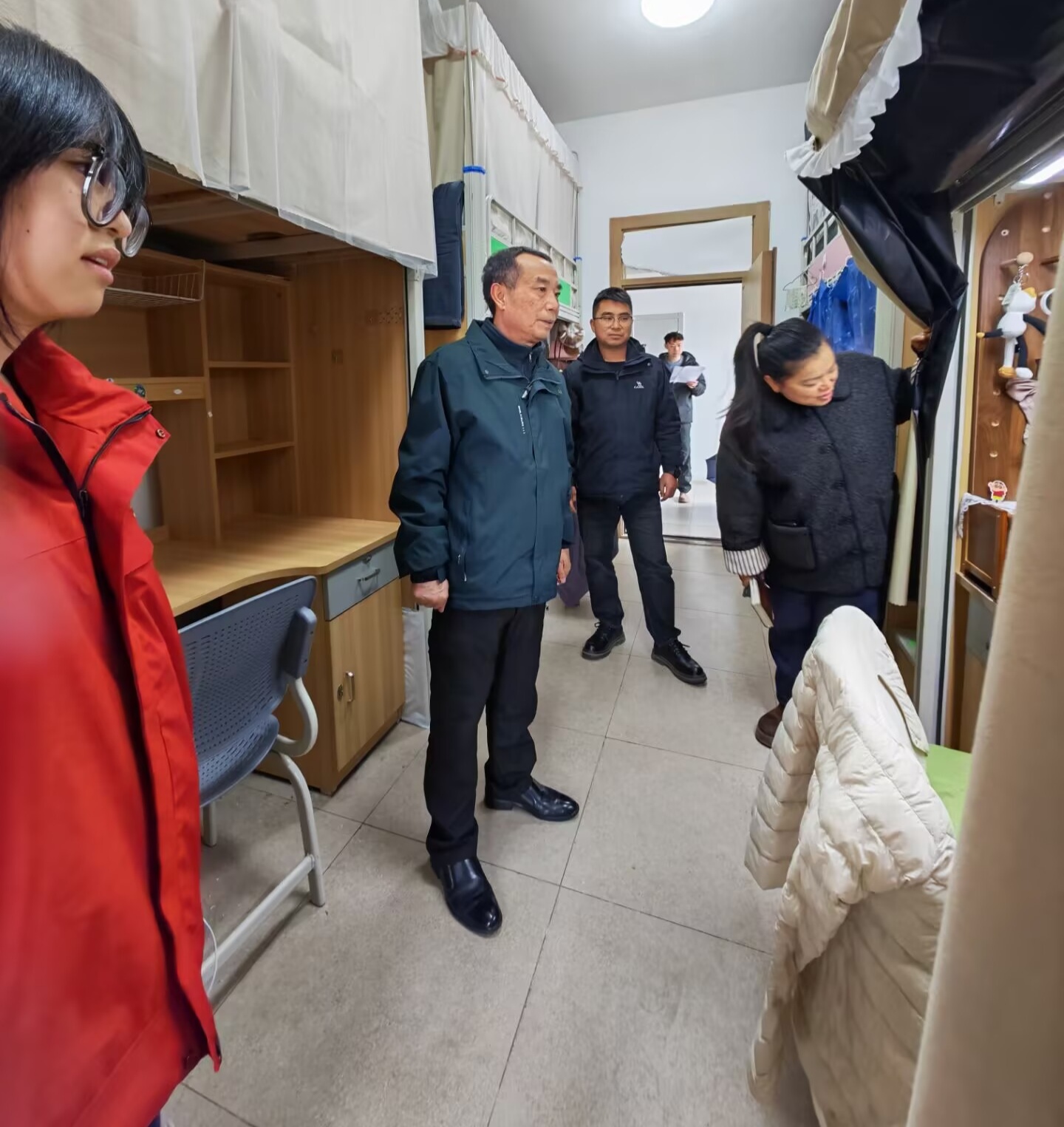 走访过程中,学院领导一行逐一走进学生寝室,与返校学生亲切交流。李继祥院长详细询问同学们的假期生活、返校行程及新学期适应情况,勉励大家珍惜时光,科学规划学习生活,以饱满的精神状态迎接新学期挑战。