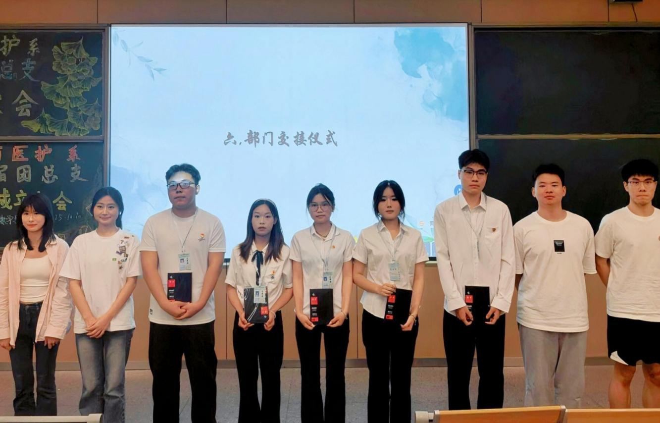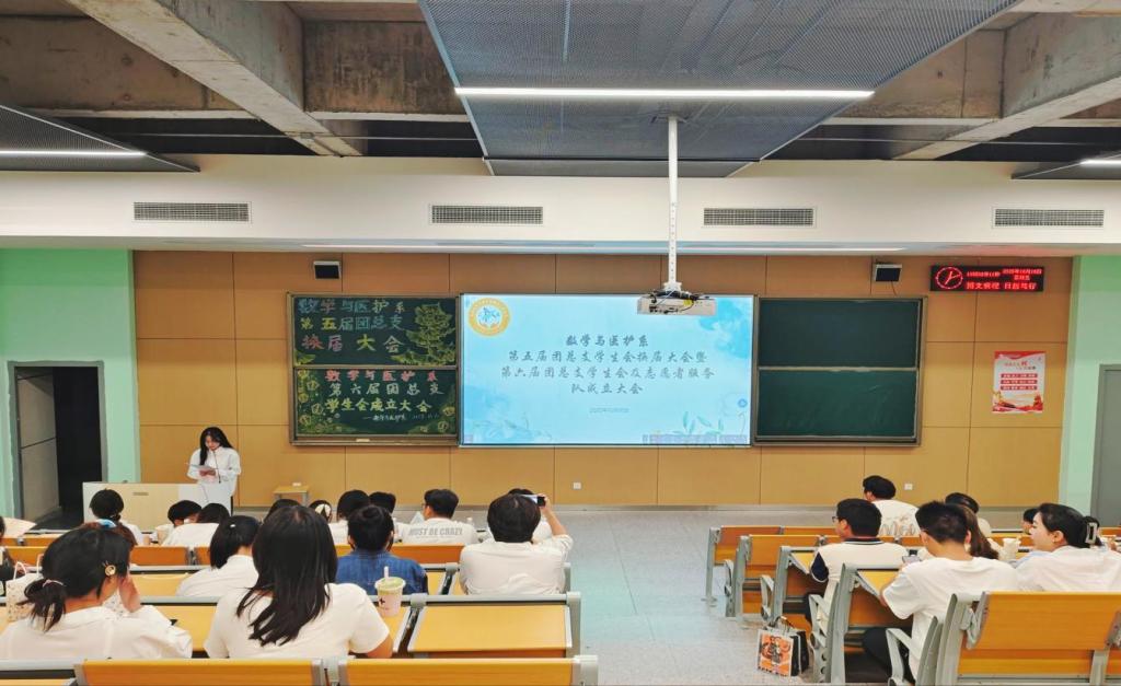 本网讯(见习记者郭傲依林)2025年10月10日19:00,数学与医护系第五届团总支学生会换届大会暨六届团总支学生会成立大会在教学楼B-213教室举行,参会人员有数学与医护系党总支副书记燕梦蝶、数医系第五届团总支学生会、第六届团总支学生会以及七色花志愿者服务队全体成员。
