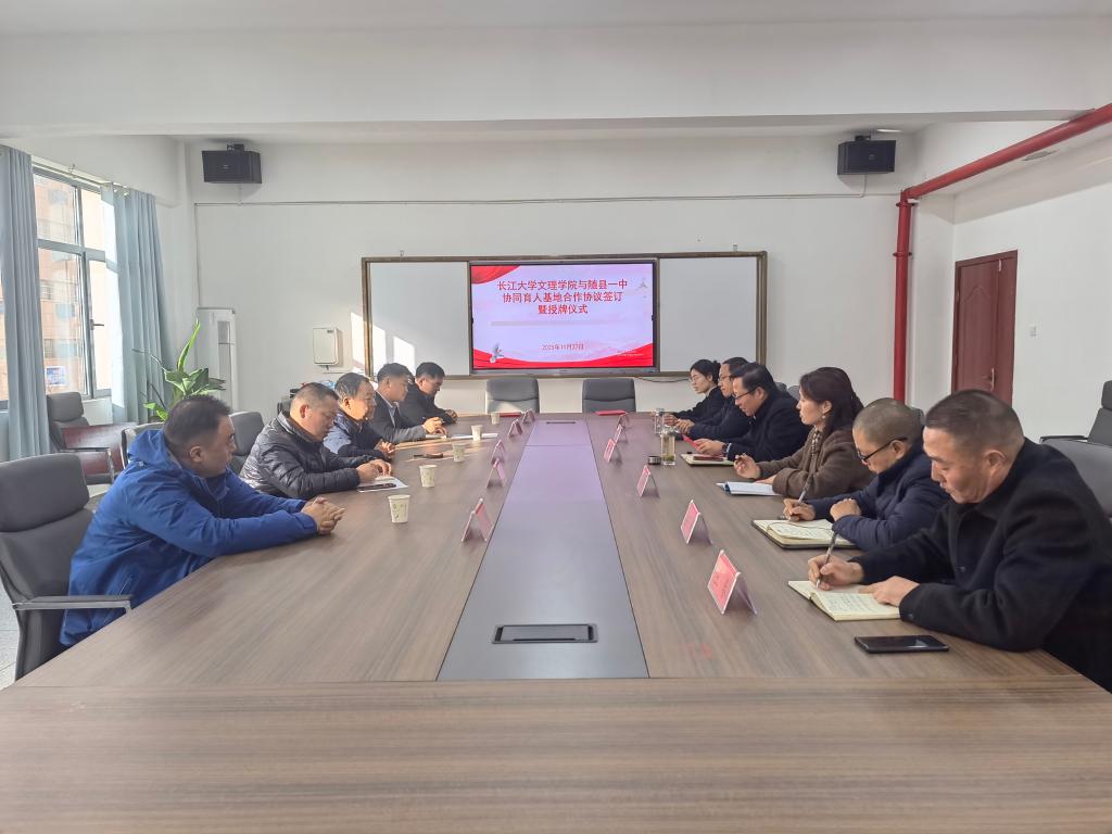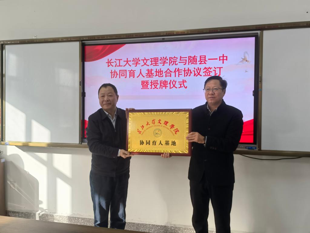 在随县第一高级中学与会人员的共同见证下,郭明虎与陈峰分别代表双方学院签署了《协同育人基地建设合作协议》。根据协议,双方将在学术交流、学生发展、教师培训及资源共享等方面开展深度合作,建立长效协同机制。