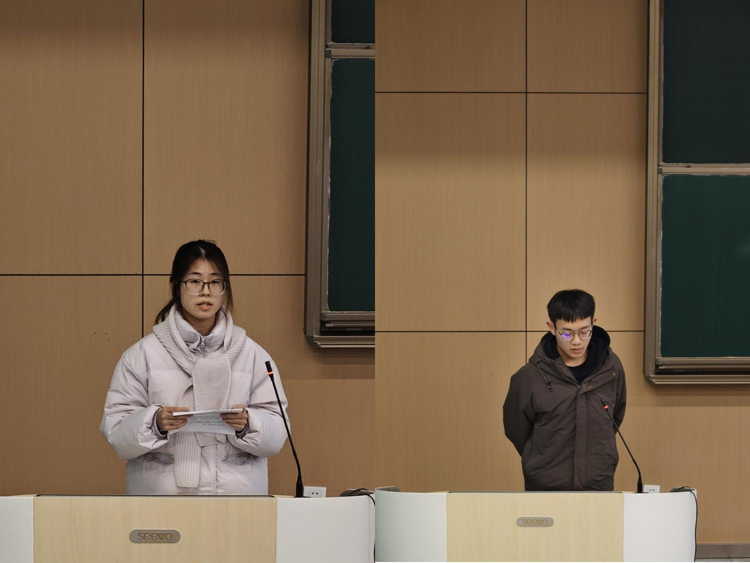 会议伊始,国家励志奖学金获得者代表陈灵芳、魏向齐依次上台分享学习经验与心得。陈灵芳结合求学与实践中的亲身经历,分享了从探索到成长的真挚感悟,并向学校的培养与支持表达谢意;魏向齐围绕学习、实践、思想、生活、经验五个维度分享了实用技巧与可行建议,为同学们的成长提供了具体指引。