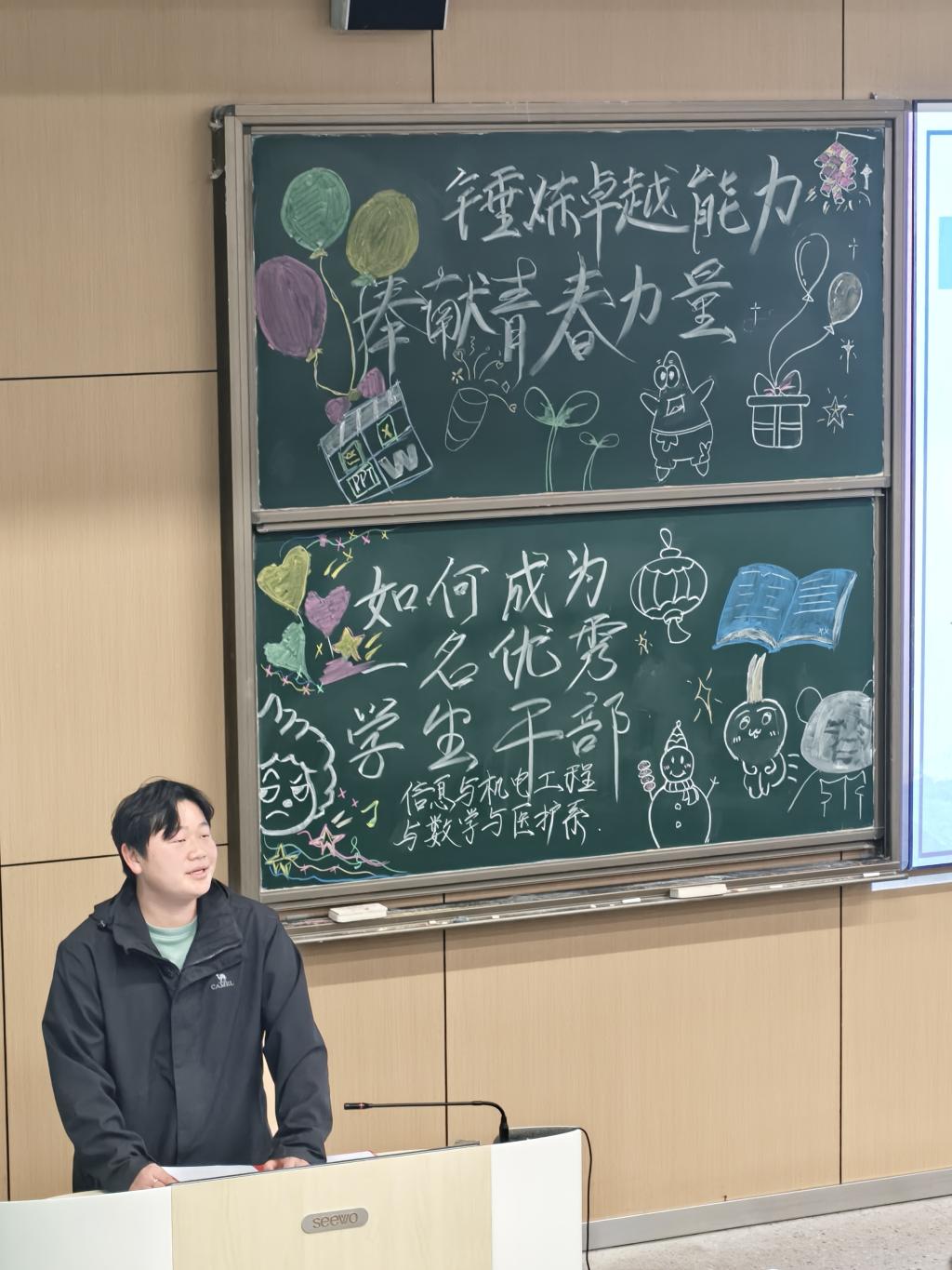 会议伊始,辅导员王盛博以系统的理论讲解展开培训,他围绕“学生干部是什么”“优秀学生干部应具备的品质”“从‘知道’到‘做到’的关键能力”“工作艺术,开展工作的技巧与方法”四个章节,结合校园工作实例,深入浅出地阐释了学生干部的角色定位与责任使命。