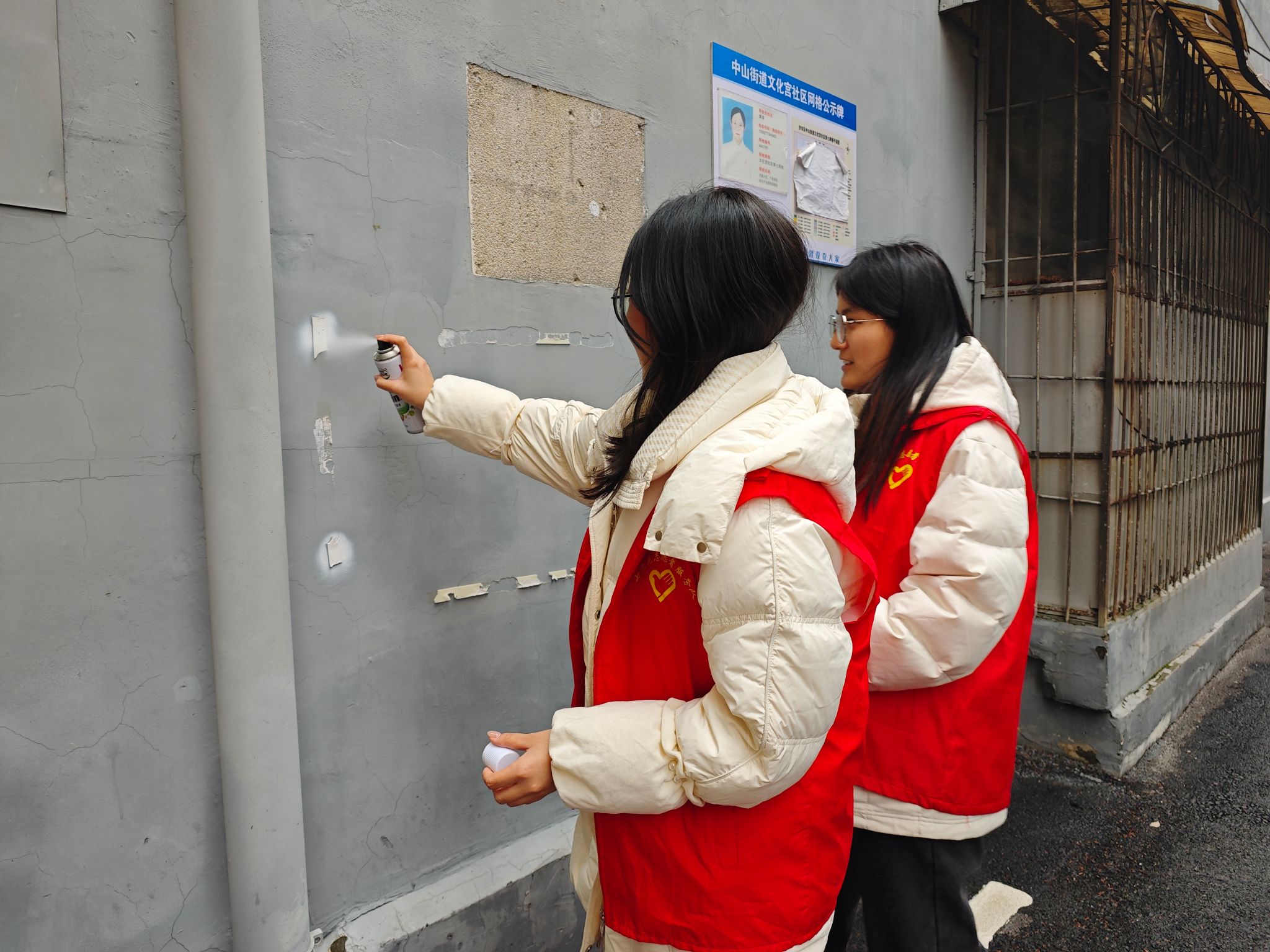 活动中,社区工作人员与大学生志愿者分工协作、默契配合,携带铲刀、除胶剂、抹布、垃圾袋等工具,深入辖区各楼栋单元,对楼道墙面、单元门、电表箱、扶手等处的违规小广告进行“拉网式”清理。大家不怕脏、不怕累,对顽固胶印仔细铲除、反复擦拭,用实际行动清除环境死角。同时,志愿者们向居民宣传文明居住理念,呼吁大家共同抵制乱贴乱画行为,守护整洁家园。