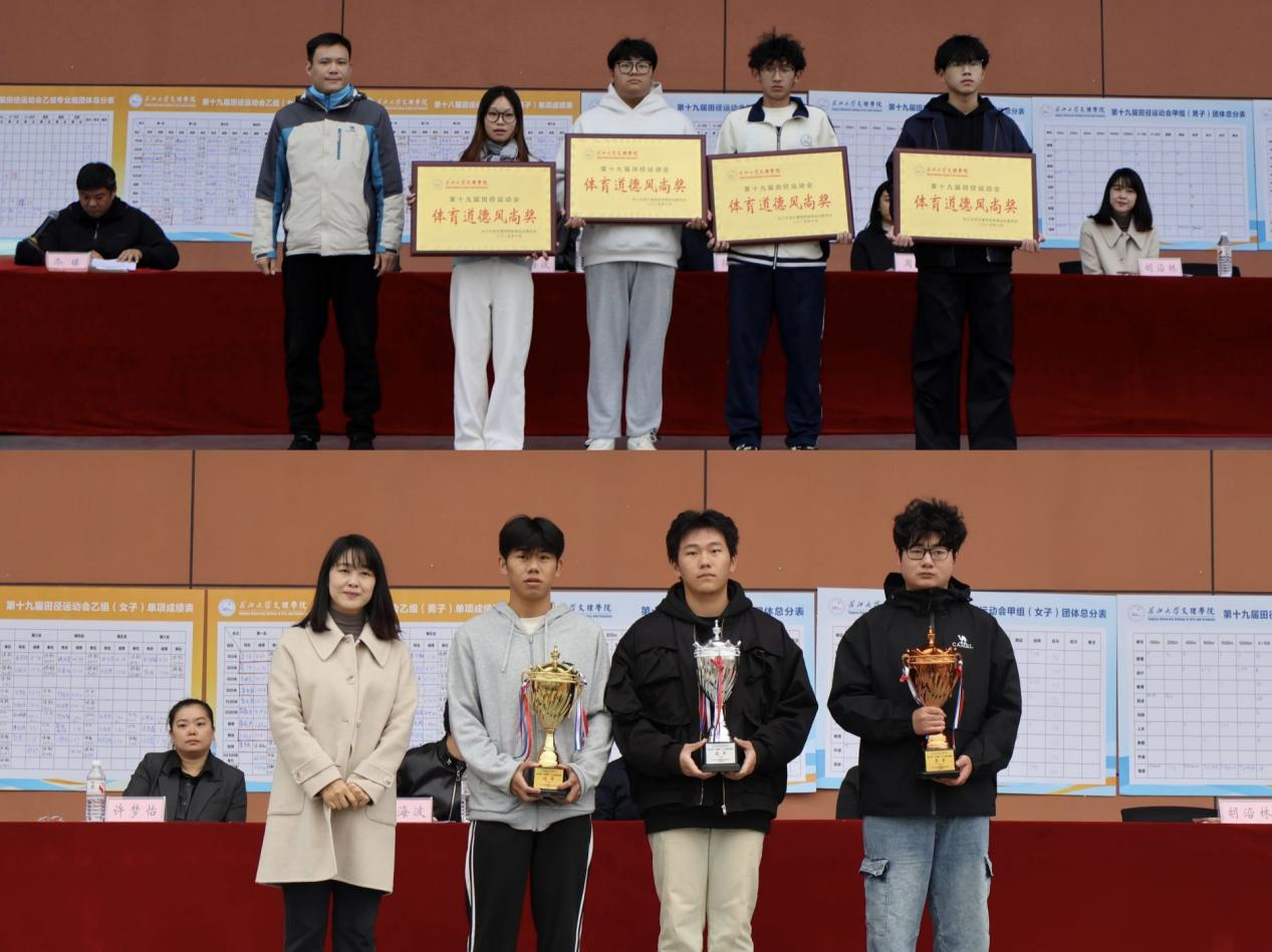 10月25日15:30运动会正式拉下帷幕,学校领导为获奖集体与个人颁奖。此次运动会不仅是对学子们身体素质与运动技能的全面检阅,更让“更高、更快、更强”的体育精神深深扎根于每一位参与者心中。相信文理学子将把赛场上的这份热血,延续到未来的学习与生活中,在人生的赛道上继续向前!