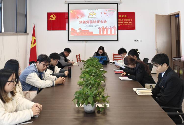 本网讯(通讯员陈克煌)11月25日中午,我系学生党支部在系部会议室召开预备党员转正大会。会议讨论阮佳莹、陈灵芳、王海静等三名同志转为正式党员事宜,由我系学生党支部书记燕梦蝶主持,支部全体党员与相关培养联系人一同参会。