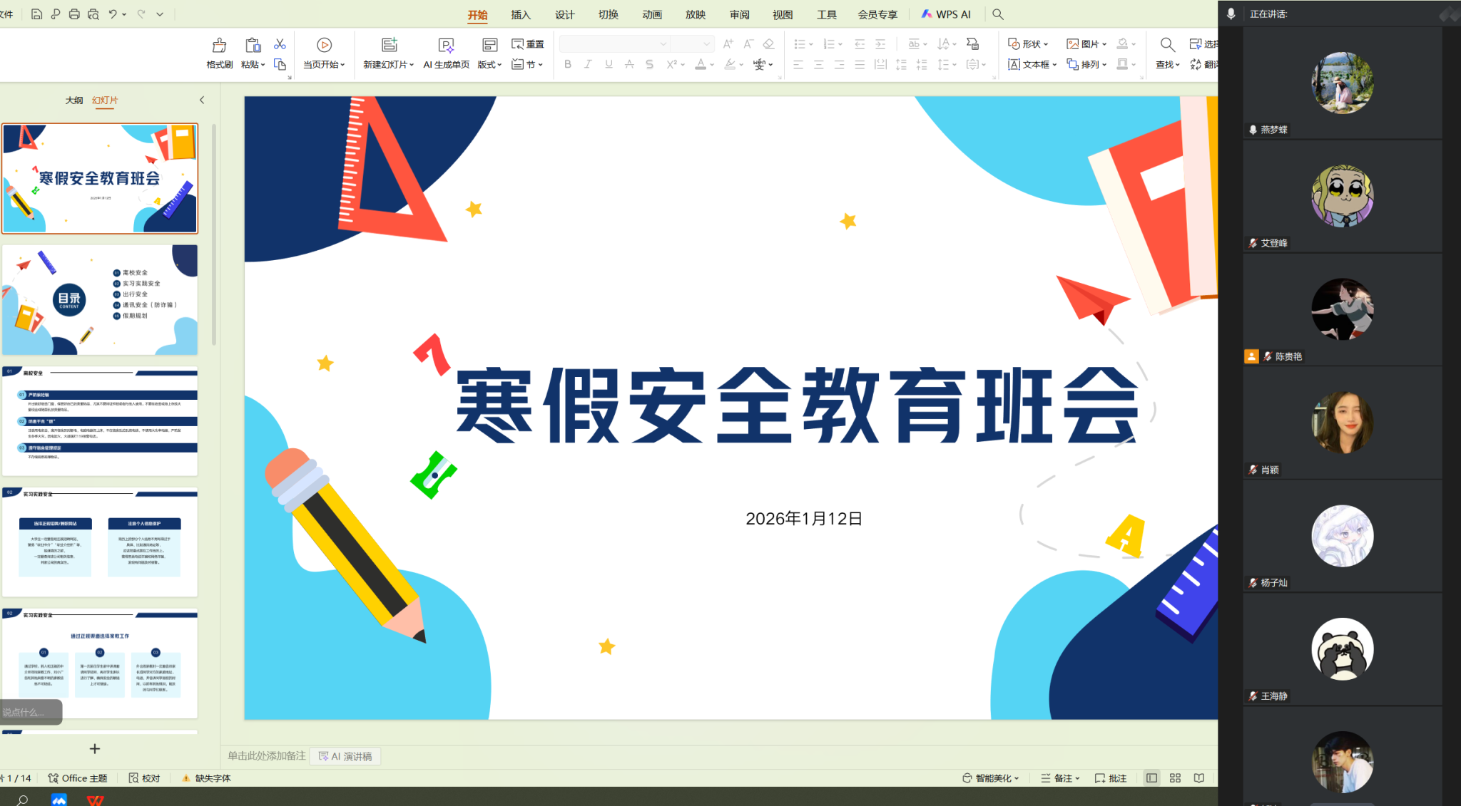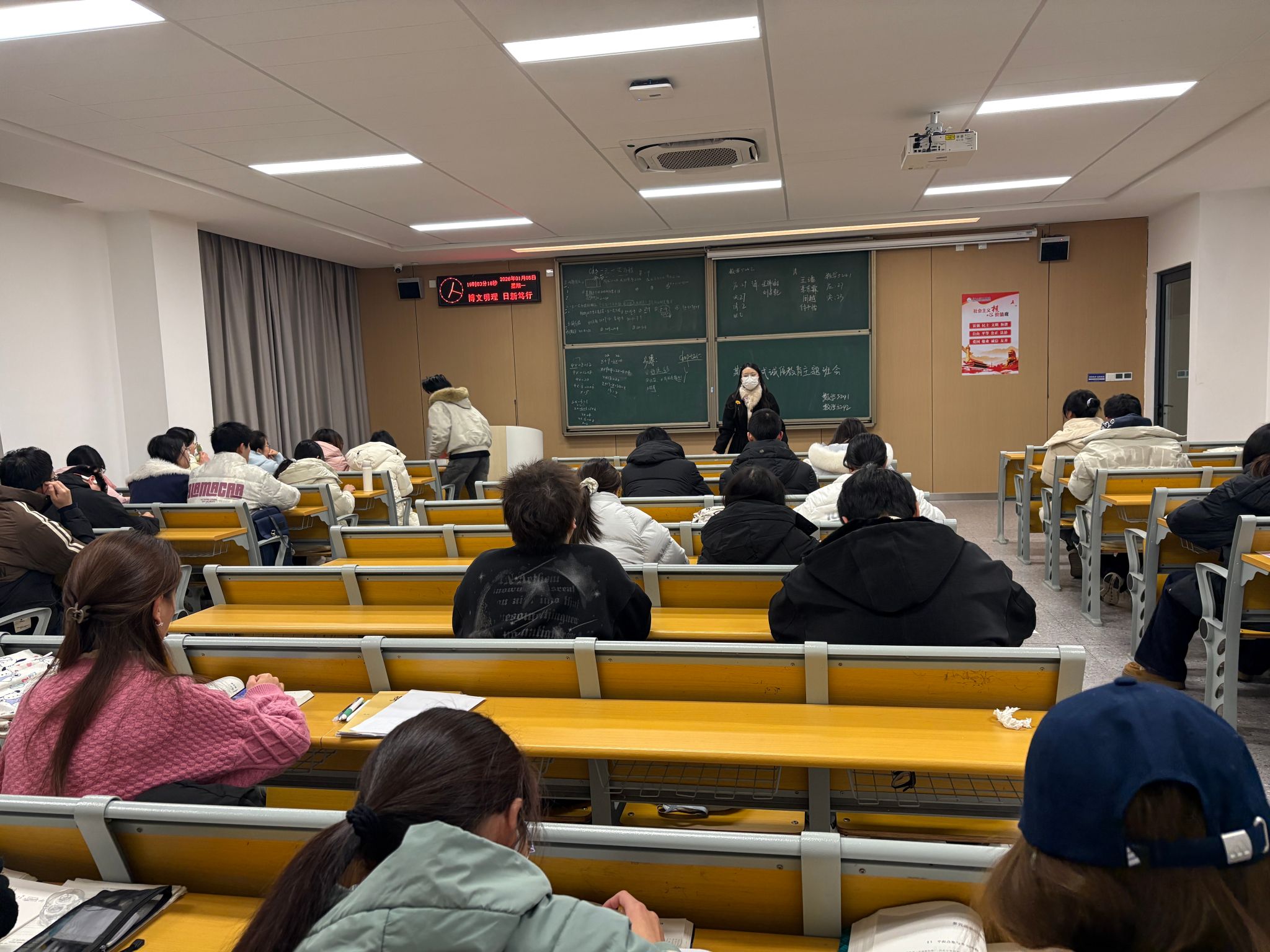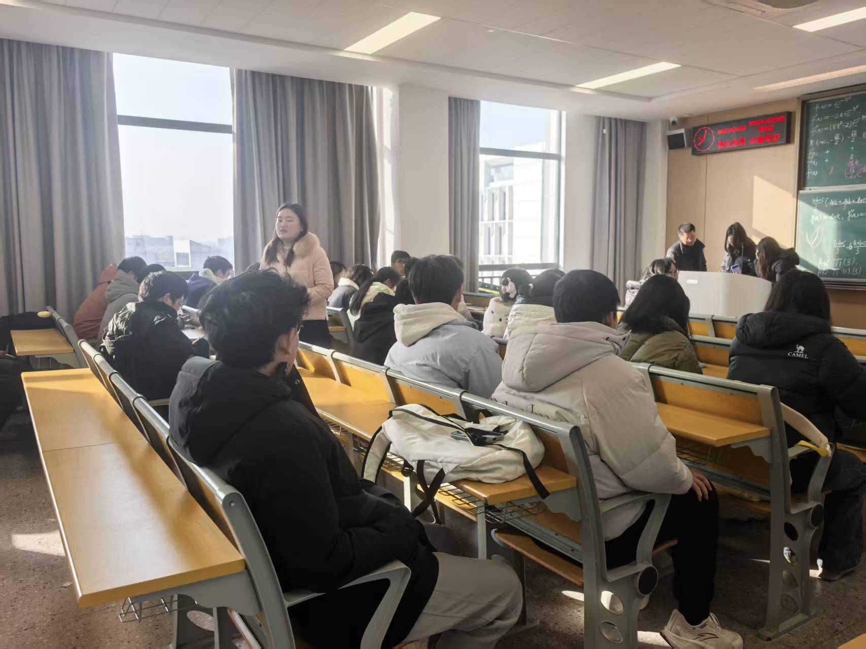 会上,针对即将到来的期末考试,班主任结合案例带领学生学习《学生手册》中关于考试纪律管理暂行规定等相关内容,强调诚信考试的重要性,鼓励同学们以诚信的品德、平和的心态认真复习,坚决打消违纪作弊的侥幸心理。随后,班主任从出行安全、人身安全、财产安全、网络安全、食品安全、求职安全等6个方面开展教育,提醒学生增强自我防范意识,杜绝安全隐患。最后强调离校前,宿舍确保关闭水电,锁好门窗,寒假期间不在宿舍存放贵重物品和现金,严禁在宿舍存放易燃易爆和有毒化学物质等危险品。