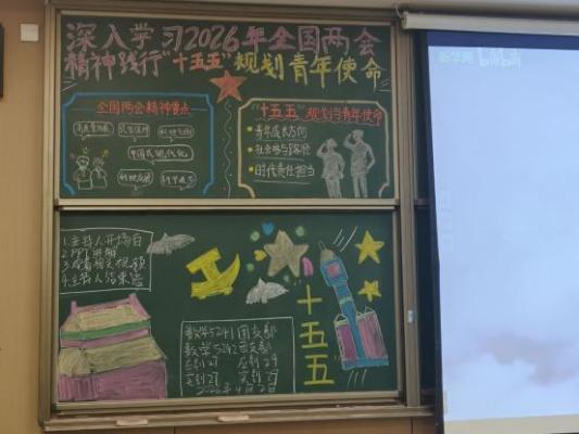 各班级精心布置主题板报,明确学习流程,营造浓厚学习氛围。团课上,主持人带领同学们系统梳理两会核心精神,重点解读“十五五”规划中与青年成长、教育发展相关的部署,引导同学们明晰时代责任。随后,同学们共同观看两会专题学习视频,从榜样事迹中汲取奋进力量,并结合专业学习交流感悟。