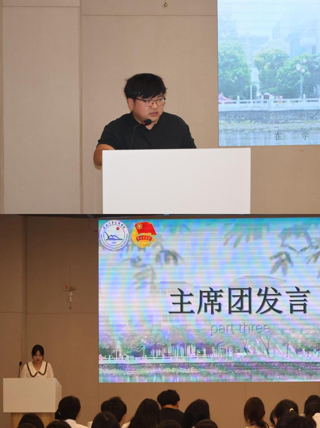 仪式伊始,主持人介绍到场嘉宾与参会成员,阐述本次大会背景与意义,为活动拉开序幕。随后,第一届团总支学生会各部门部长依次上台发言,结合工作实例,全面总结2024学年部门在活动组织、服务同学等方面的成果,同时坦诚分析工作中的不足,为新一届成员提供宝贵经验。