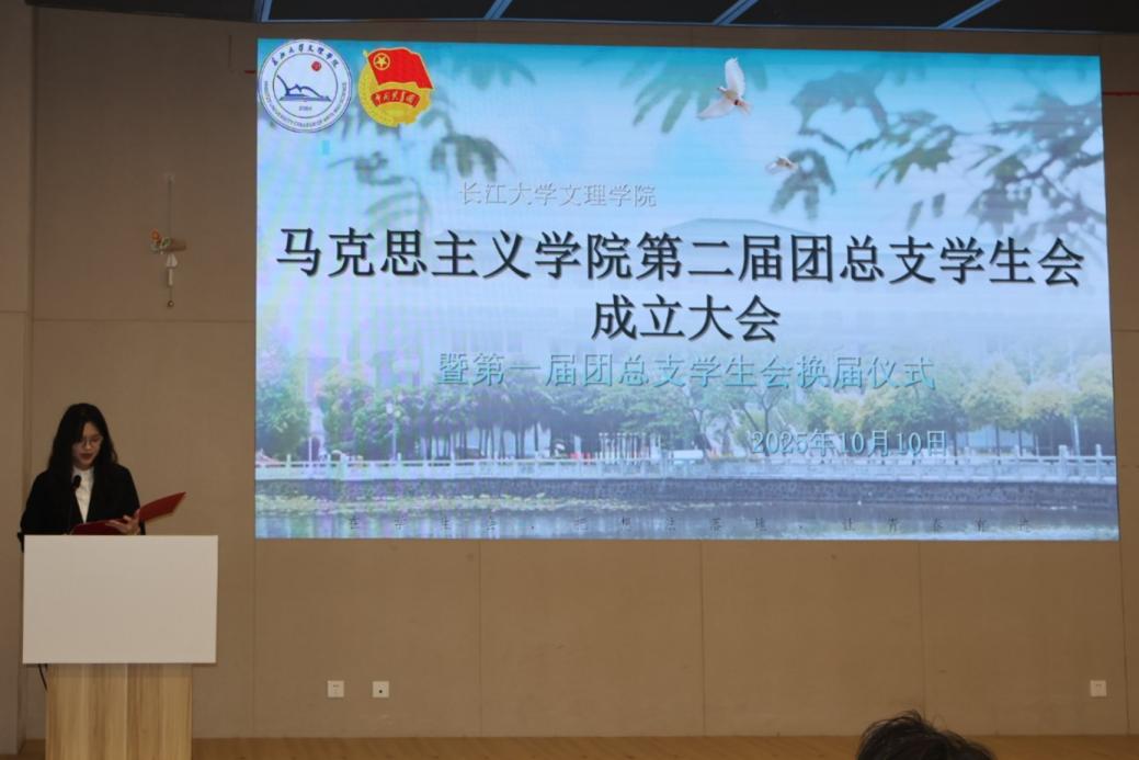 10 月 10 日下午 4 时 30 分,长江大学文理学院马克思主义学院第二届团总支学生会成立大会暨第一届团总支学生会换届仪式在图书馆 103 报告厅隆重举行。学院辅导员李天赐老师、第一届及第二届团总支学生会全体成员参会。