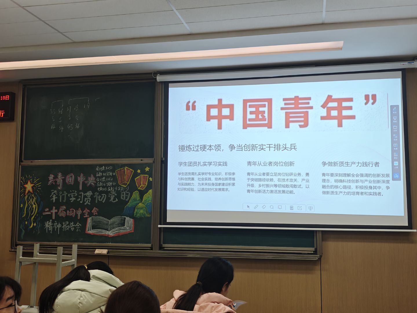 为深入学习贯彻党的二十届四中全会精神,引导广大团员青年深刻把握“十五五”时期发展战略部署,筑牢跟党奋进的思想根基,团委组织开展学习贯彻党的二十届四中全会精神专题报告会,覆盖全校各级团组织及广大青年群体,掀起青年学习全会精神的热潮,为青春建功中国式现代化凝聚磅礴力量。