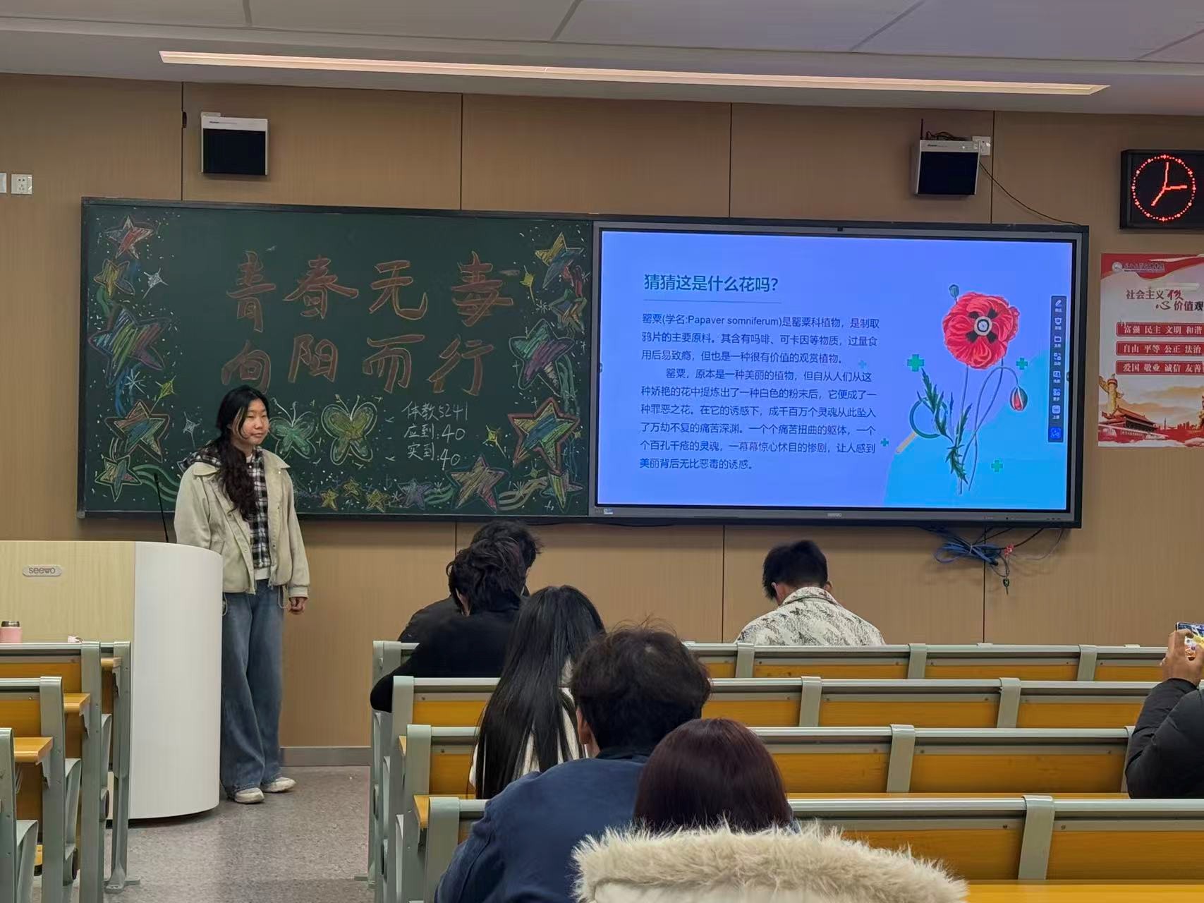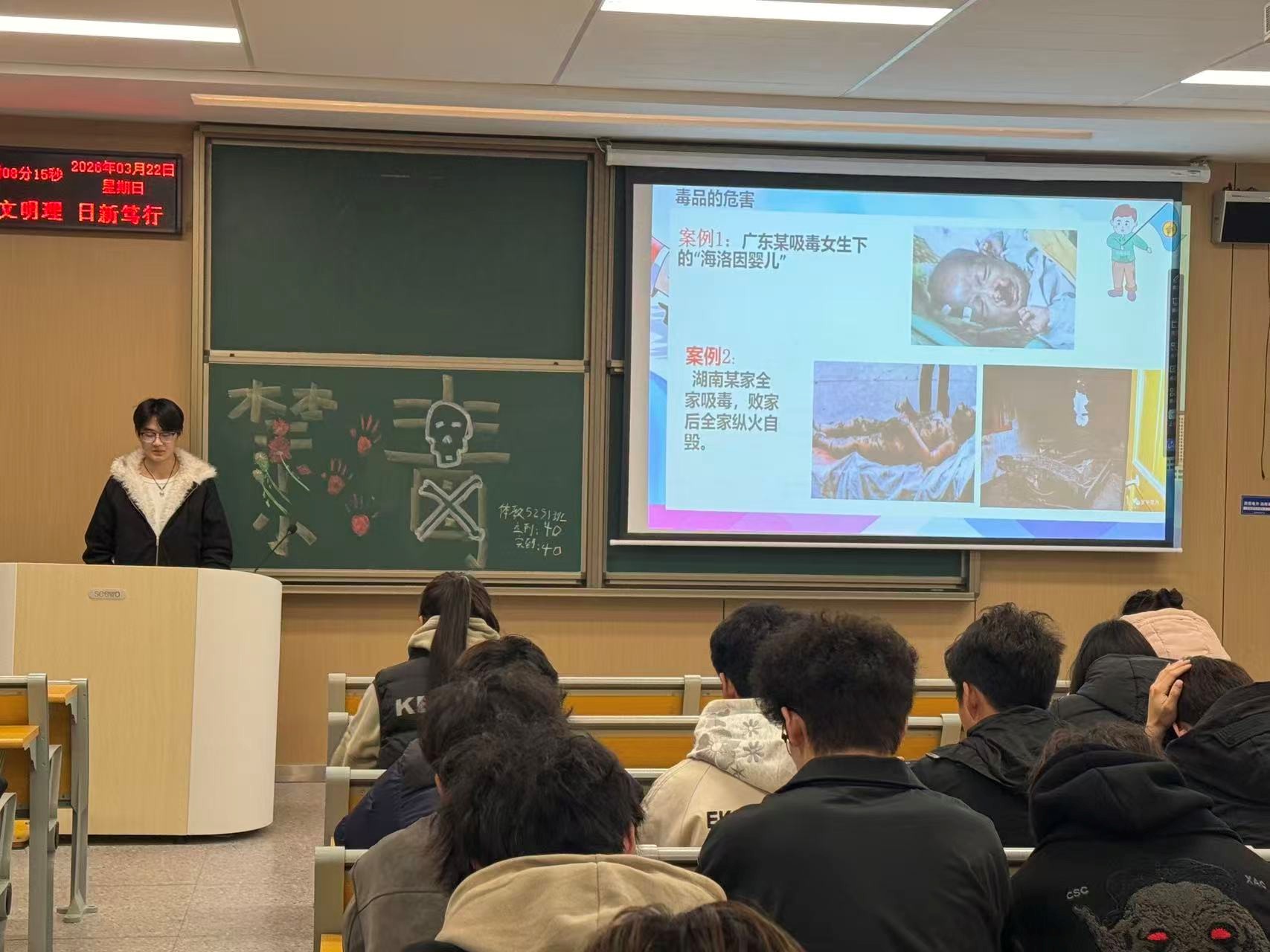 互动环节中,同学们围绕“如何识别新型毒品伪装”“遇到涉毒诱惑时的应对方法”等问题展开热烈讨论,多名学生结合所见所闻分享感悟。活动最后,同学们在各班团支书的带领下,庄严宣誓“珍爱生命,远离毒品,从我做起,担当责任”。