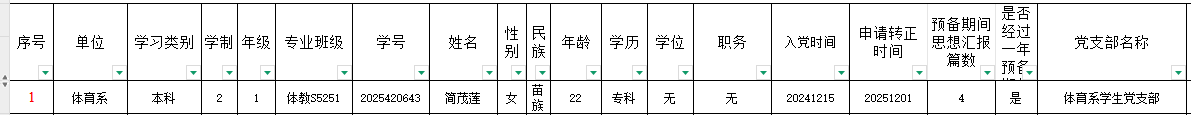 附: 简茂莲 同志预备党员拟转正情况一览表