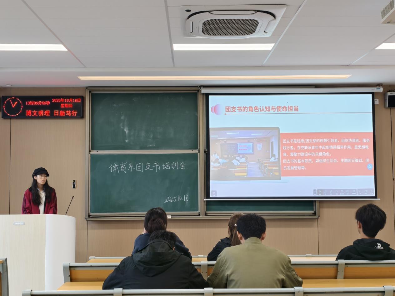 本网讯(通讯员 刘俊霞)为加强基层团组织建设,提升新任团支书的业务能力和综合素质,确保新学期团支部工作有序、高效开展,2025年10月16日,体育系组织部在教学楼A-201隆重举行了新学年团支书培训会。系组织部全体成员及各班级团支书参加了本次会议。