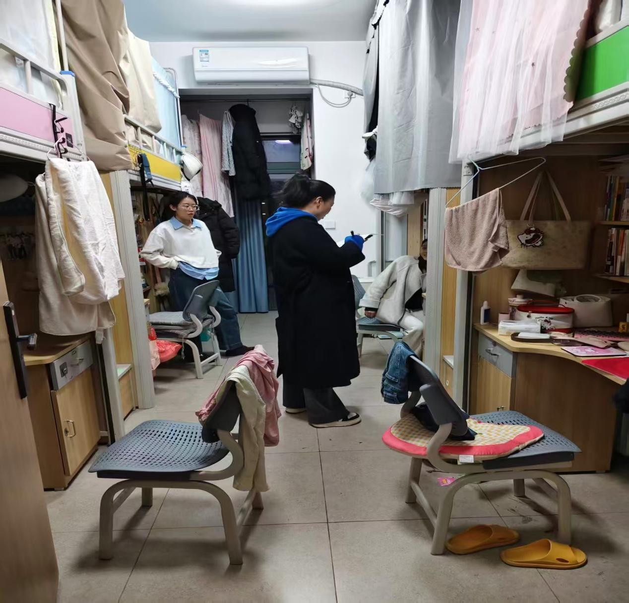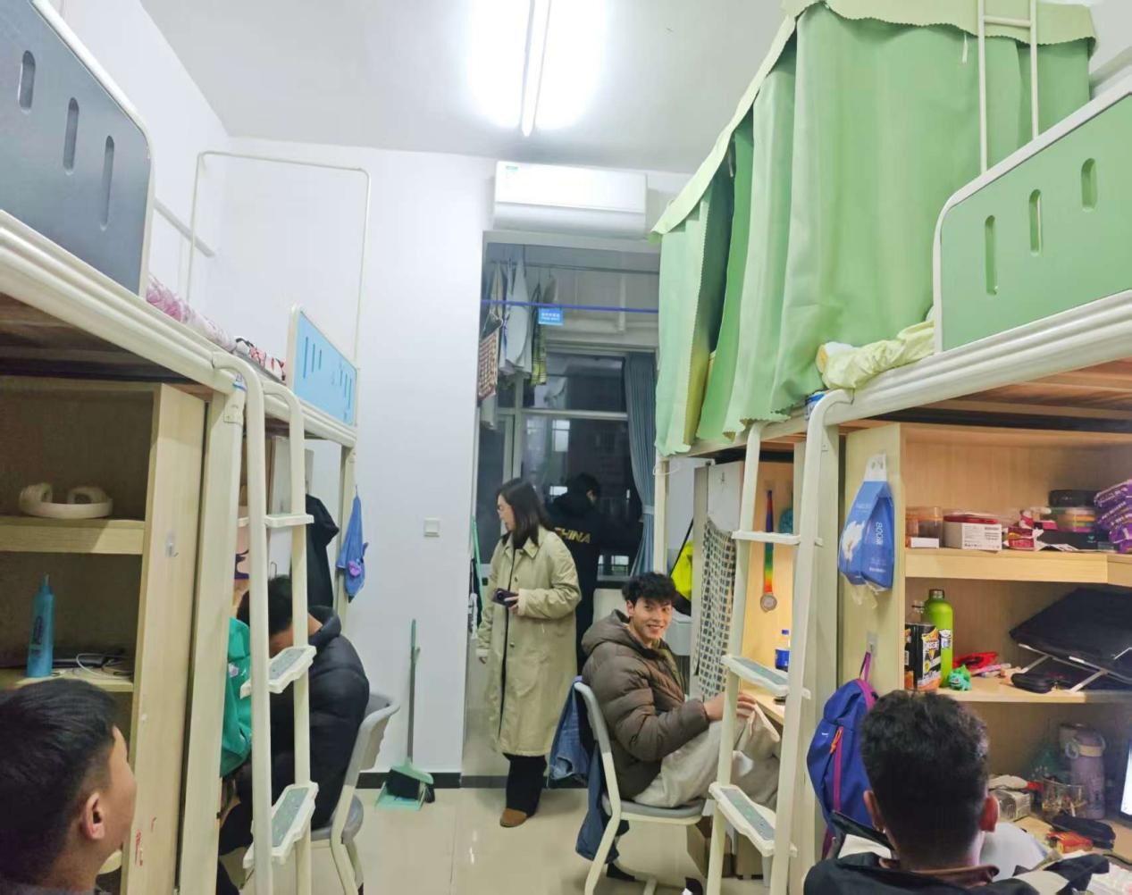 在安全卫生方面,老师们坚持细致严谨的原则,重点对宿舍用电安全、消防设施及疏散通道进行检查,确保无违规电器使用、无安全隐患死角。结合春季气温回升、病菌易滋生的情况,老师们还提醒同学们勤通风、勤打扫,做好个人卫生防护,共同营造健康整洁的居住环境。