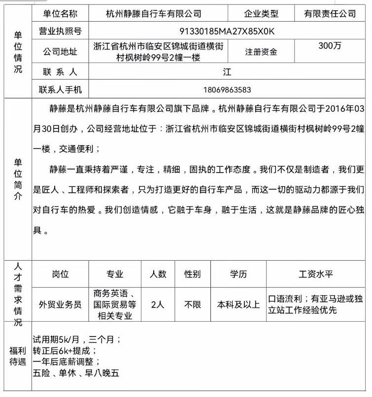 上一条:义乌市言睿网络科技有限公司招聘简章