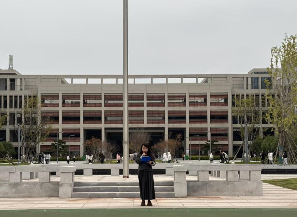 随后,学生代表吴潇堉以《以青春之名,贺祖国华诞》为题发言,结合外语专业特色,阐述青年学子如何以语言为桥讲好中国故事。教师代表许静婷老师以《以青春小我,筑梦时代华章》为题,鼓励同学们把英语从“一门专业”变成“一种能力”。