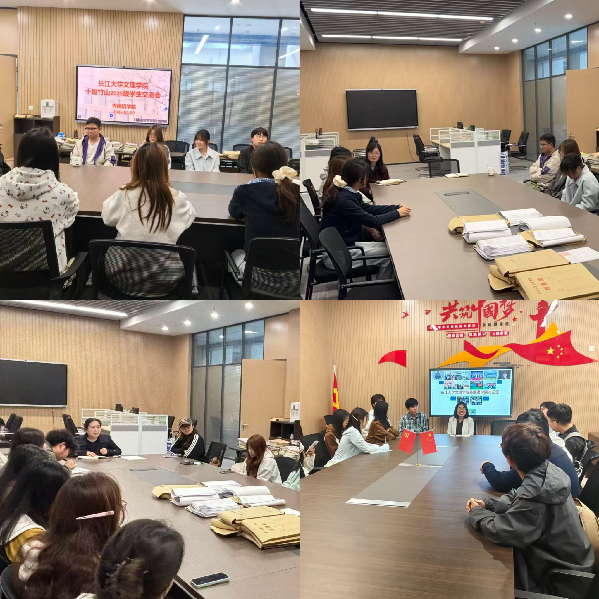 本网讯 为进一步做好新生入学后的跟踪服务,加强学院与生源地学生的情感纽带,在赴十堰片区高中开展走访慰问活动的前一周,长江大学文理学院外国语学院于2026年4月9日前后,分别按十堰市区、竹山、丹江口、竹溪、房县等地,按高中来源组织召开了多场2025级新生座谈会。各片区招生负责老师及全体来自对应高中的2025级新生参加了座谈。