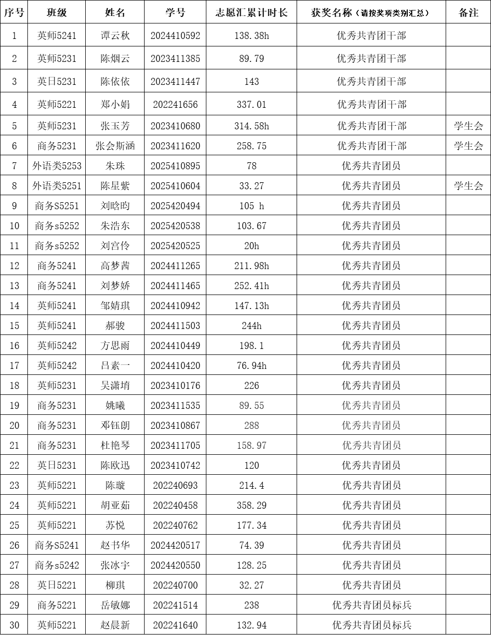 根据学院团委《关于开展长江大学文理学院2026年五四评优表彰活动的通知》文件精神,经个人及支部申请,辅导员组织各团支部民主评议、外国语学院团总支审核等环节,现将外国语学院团总支2026年五四评优表彰结果公示如下。
