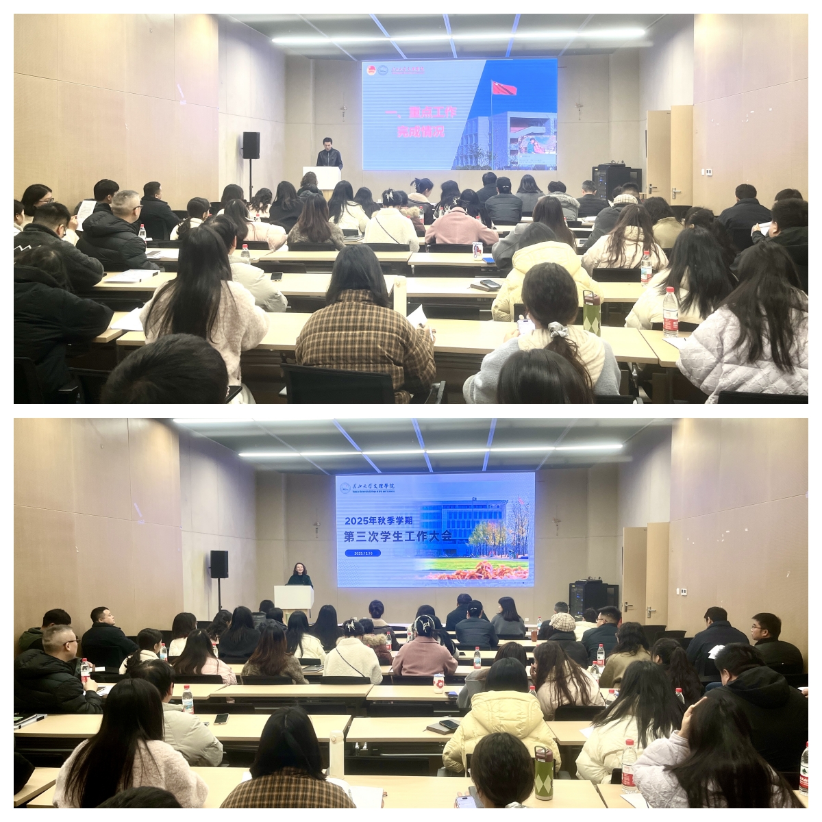 12月16日下午,我校在图书馆103报告厅召开学生工作大会。校领导学院党委副书记李则俊出席会议,各教学单位党总支书记、副书记、辅导员,学生工作处、团委全体成员参加会议。会议由学生工作处处长李刚英主持。