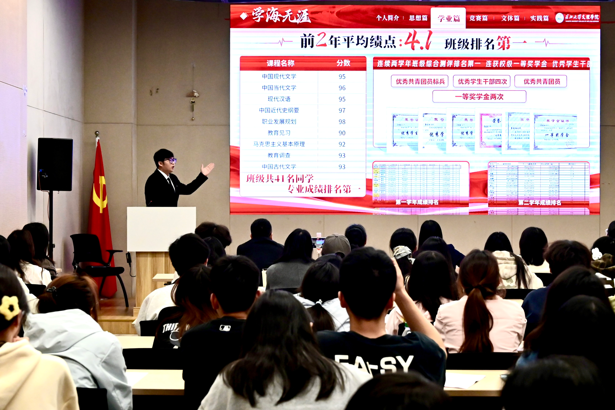 此次评选经过个人申请、院系推荐、资格审查等环节,最终来自8个院系的15名候选人进入答辩环节。答辩中,候选人围绕思想引领、专业学习、科研创新、社会实践等方面进行个人展示,充分展现了我校学子积极向上、全面发展的良好风貌。本次评选将结合个人积分与现场答辩表现,最终评选出10名第十一届“十佳大学生”。